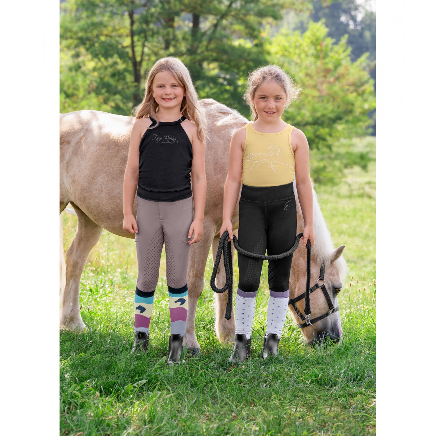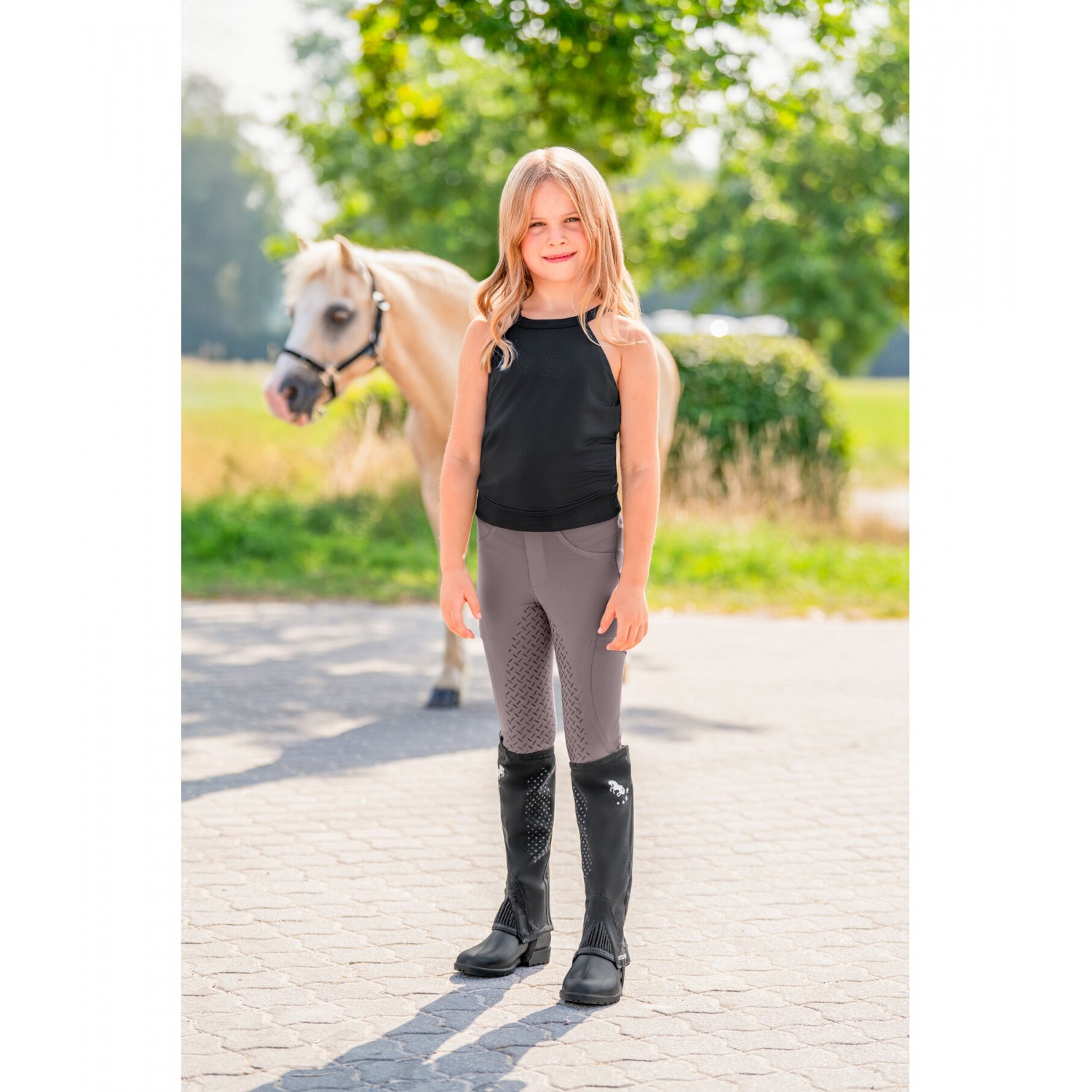 Спортивные детские леггинсы, имитирующие бриджи для верховой езды, изготовлены из высококачественного дышащего материала, тянущегося в четырех направлениях. Полностью силиконовая лея, боковые карманы для мобильного телефона с красивым принтом логотипа, гибкие концы брючин, отсутствие коленных швов и широкий пояс со шлевками для ремня. Дополнительный блестящий логотип на спине. Также доступны промежуточные размеры. 89% полиэстер, 11% эластан.