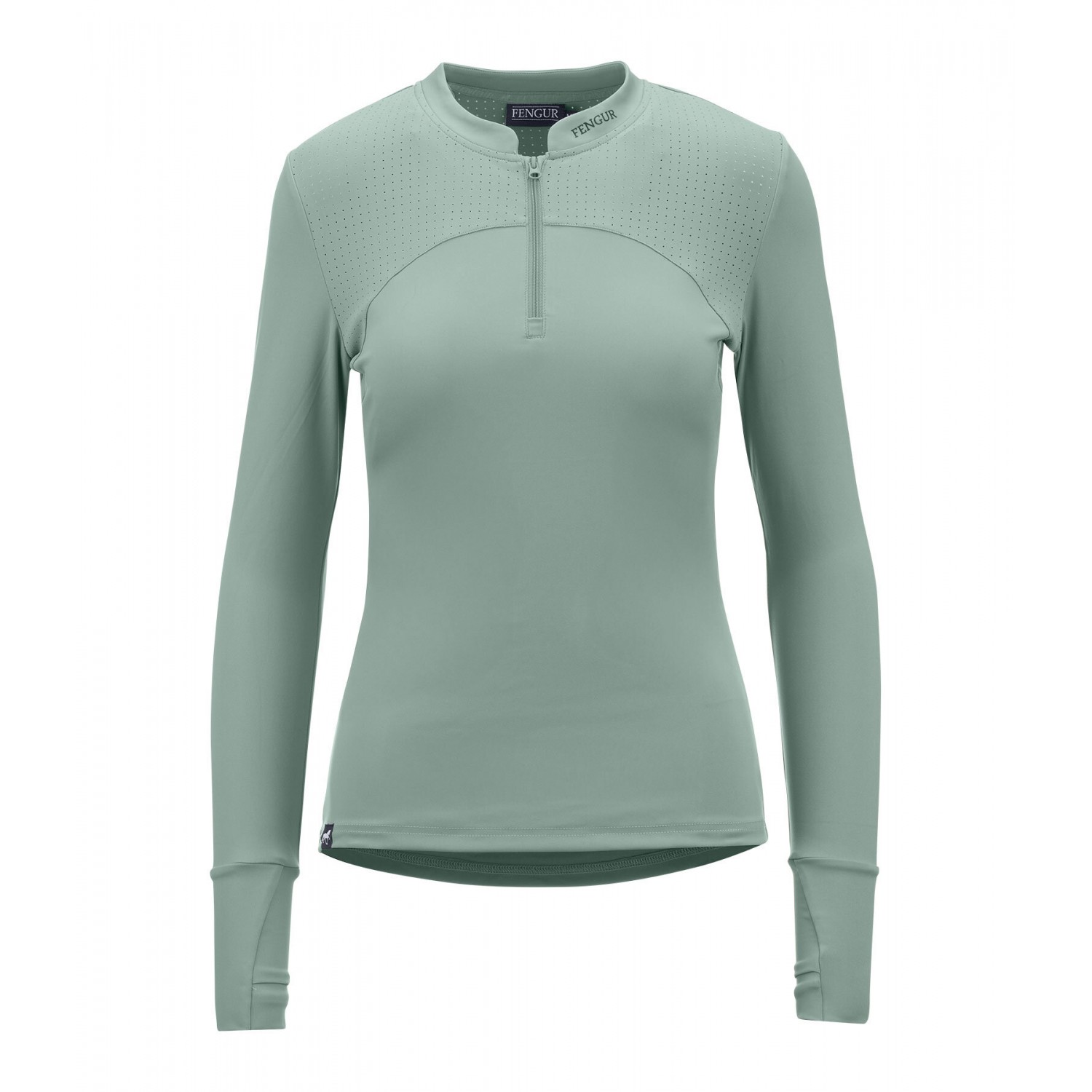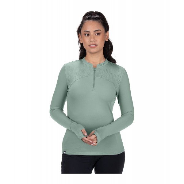 Дышащая футболка с длинными рукавами, лазерной перфорацией на плечах и отверстиями для больших пальцев для дополнительного комфорта. Имеет силиконовые логотипы, воротник-стойку на молнии с защитой подбородка. Состав: 81% полиэстер, 19% эластан.