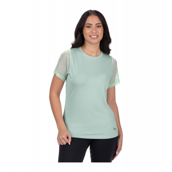 Дышащая футболка свободного кроя с рукавами из дышащего сетчатого материала. Ткань мягкая, слегка тянется. Круглый вырез. 94 % полиэстер, 6 % эластан.