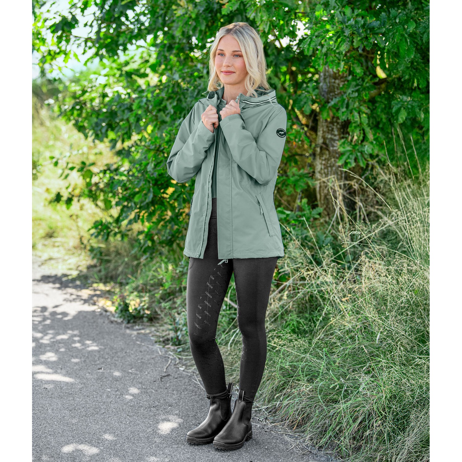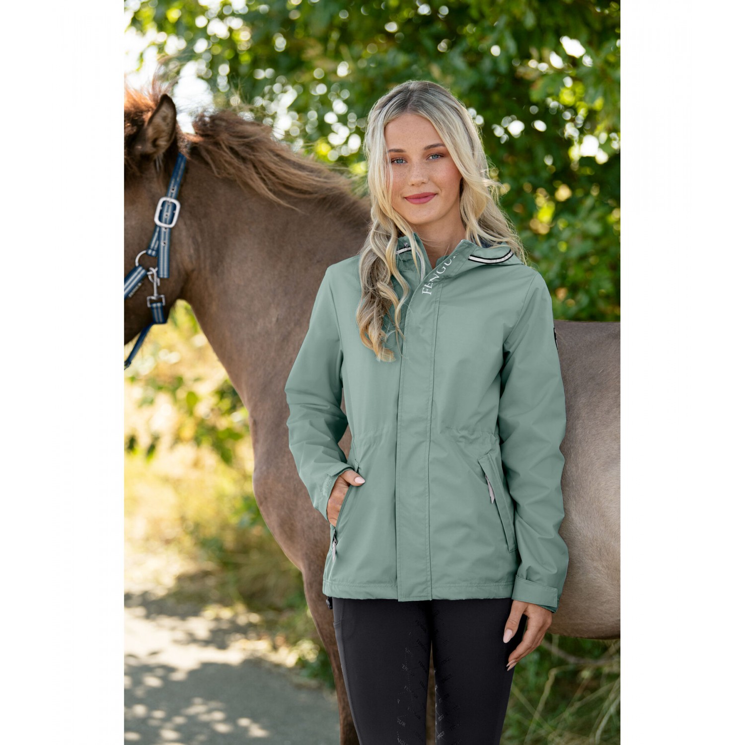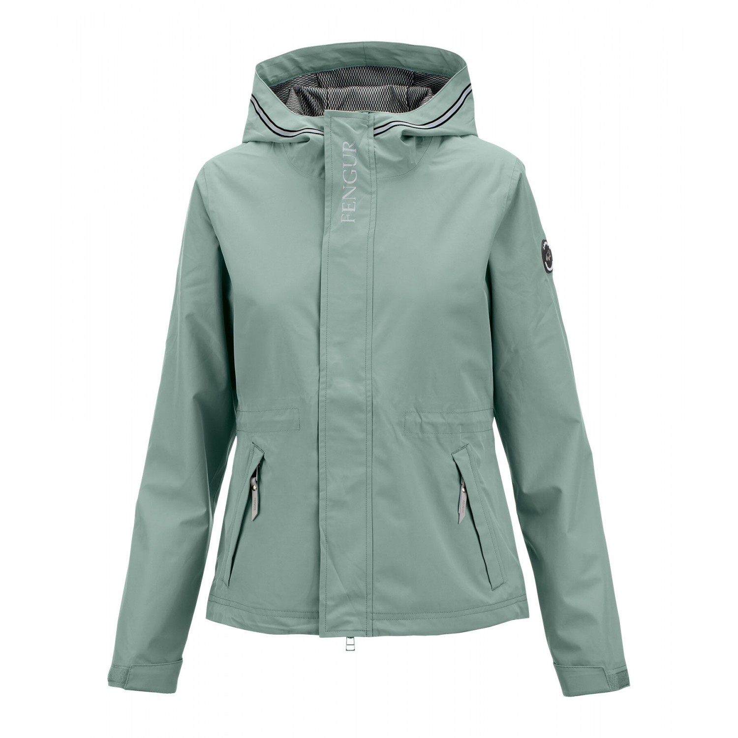 Ветрозащитная и водонепроницаемая куртка с легкой сетчатой подкладкой и светоотражающими элементами на капюшоне и груди. Регулируемый низ, талия и манжеты. Скрытая двусторонняя передняя молния, два передних кармана на молнии и несъемный капюшон. Логотип на рукаве. 100% полиэстер.