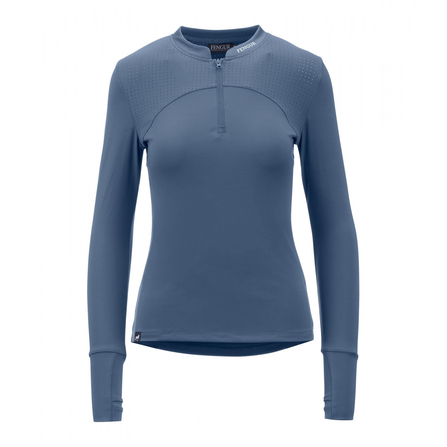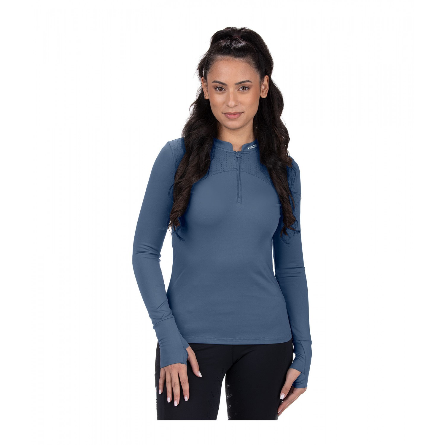 Дышащая футболка с длинными рукавами, лазерной перфорацией на плечах и отверстиями для больших пальцев для дополнительного комфорта. Имеет силиконовые логотипы, воротник-стойку на молнии с защитой подбородка. Состав: 81% полиэстер, 19% эластан.
