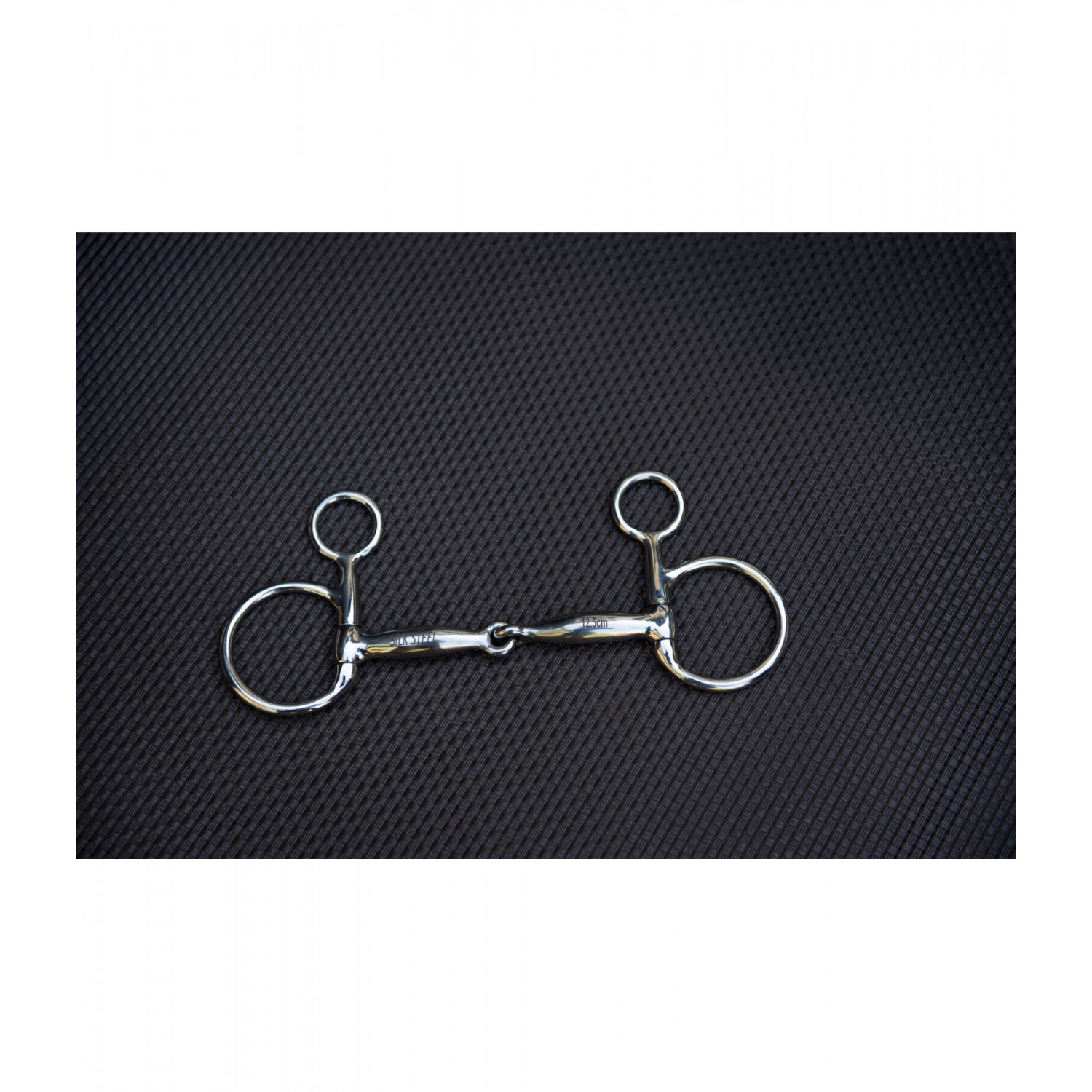 Трензель Боше снабжен нащечными колечками и сделан из нержавеющей стали, которая никогда не покроется ржавчиной, не погнется и не сломается. Нащечные ремни прикрепляются к верхним колечкам, а повод прикрепляется к большим кольцам. Этот трензель разрешен к применению на выездковых соревнованиях, и может использоваться на уздечке или на оголовье. Он обеспечивает достаточное поднятие затылка и идеально подходит для лошадей с чувствительным ртом. Толщина 14 мм. Размер кольца 55 мм.