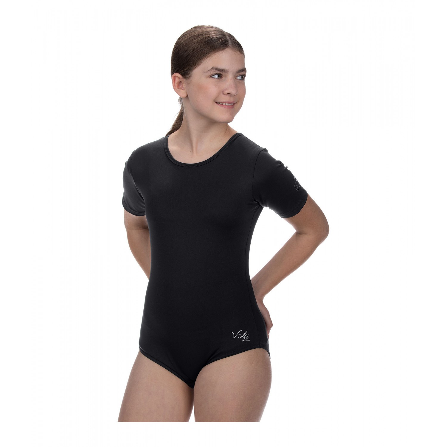 Эластичная, непрозрачная боди-футболка с практичными застежками-кнопками в области промежности для удобства одевания и раздевания. Дышащий и быстросохнущий материал. 75% полиэстер, 25% эластан.