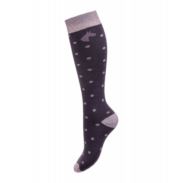 Детские гольфы для верховой езды модного дизайна в блестящую точку и изображением лошади. 71% хлопок, 17% полиэстер, 5% люрекс, 4% нейлон, 3% эластан. Размеры: XS-25-29; S-30-34; M 35-39.