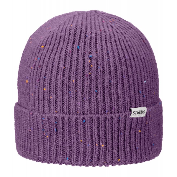 Детская шапка тонкой вязки из яркой пряжи. Спереди — незаметный лейбл STEEDS. Состав: 55% полиакрил, 38% нейлон, 5% шерсть, 2% полиэстер.