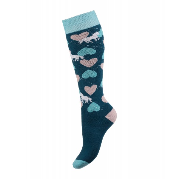 Детские гольфы с милым принтом лошадей, сердечек и ромбовидным узором. 80% хлопок, 17% полиэстер, 2% нейлон, 1% эластан.