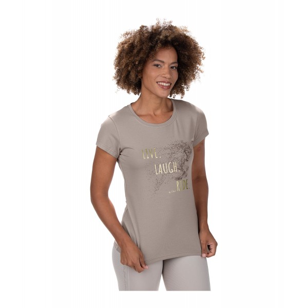 Футболка свободного кроя с круглым вырезом и красивым крупным девизом спереди. 95% хлопок, 5% полиэстер.