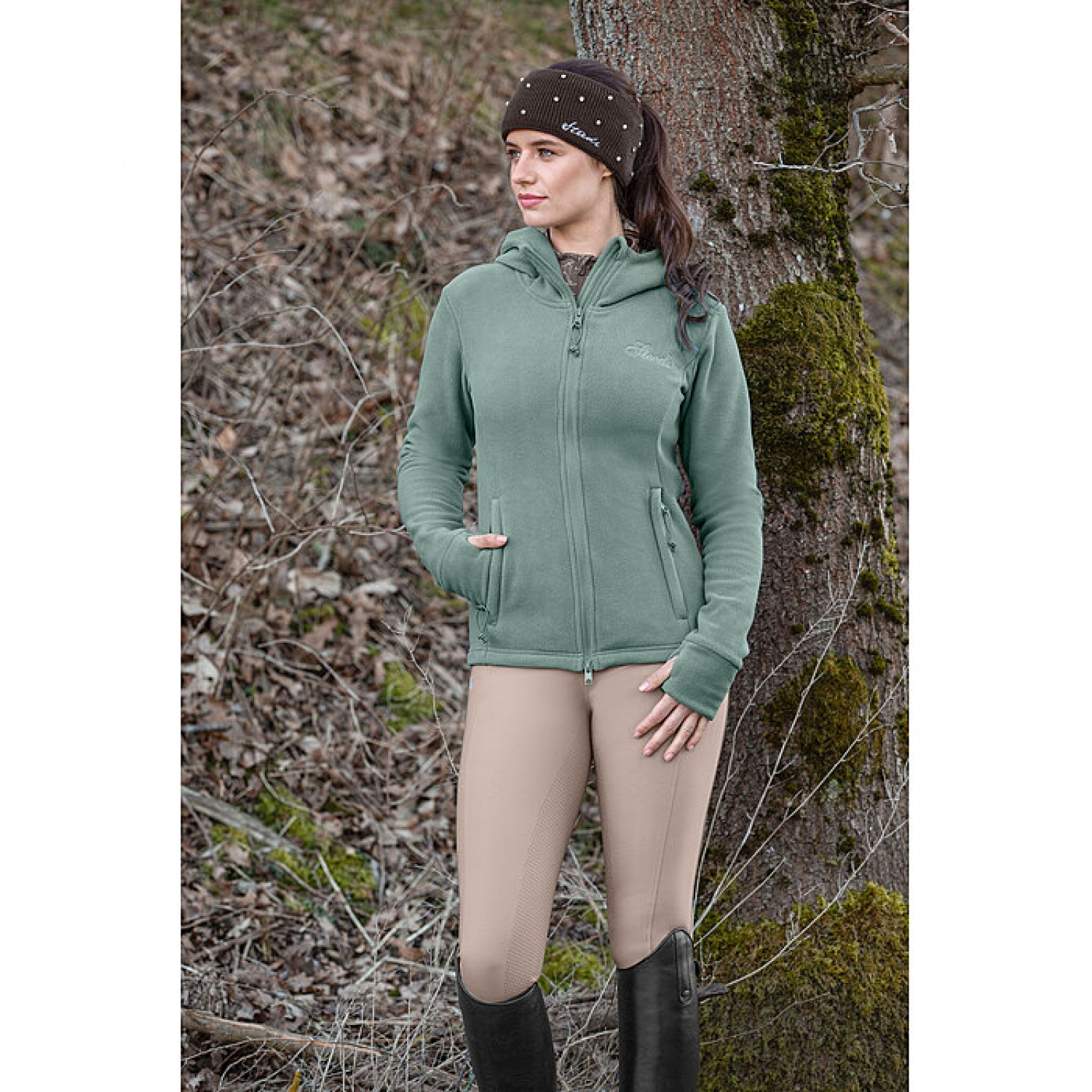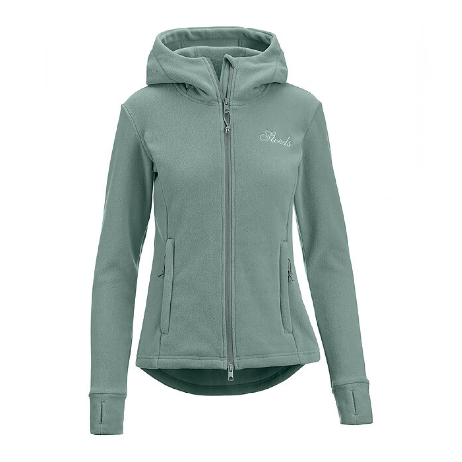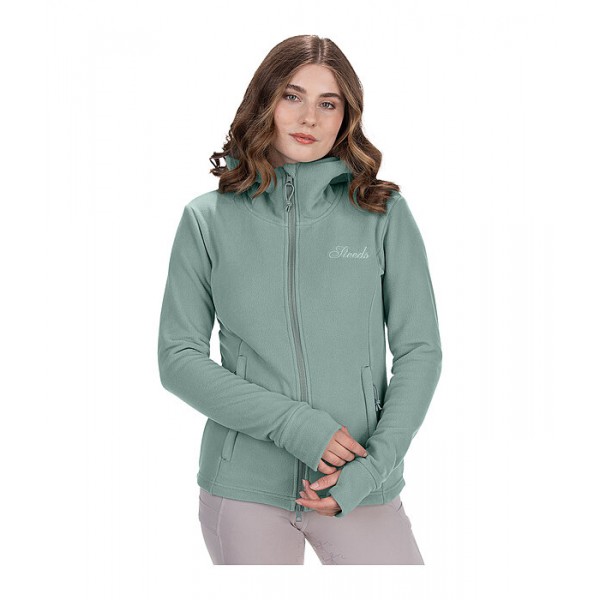 Мягкая, очень теплая флисовая куртка с высоким капюшоном. Приталенный силуэт, сзади немного длиннее, двусторонняя молния спереди с защитой подбородка, 2 потайных кармана на молнии спереди и манжеты с отверстиями для большого пальца. Вышивка STEEDS на груди. 100% полиэстер.