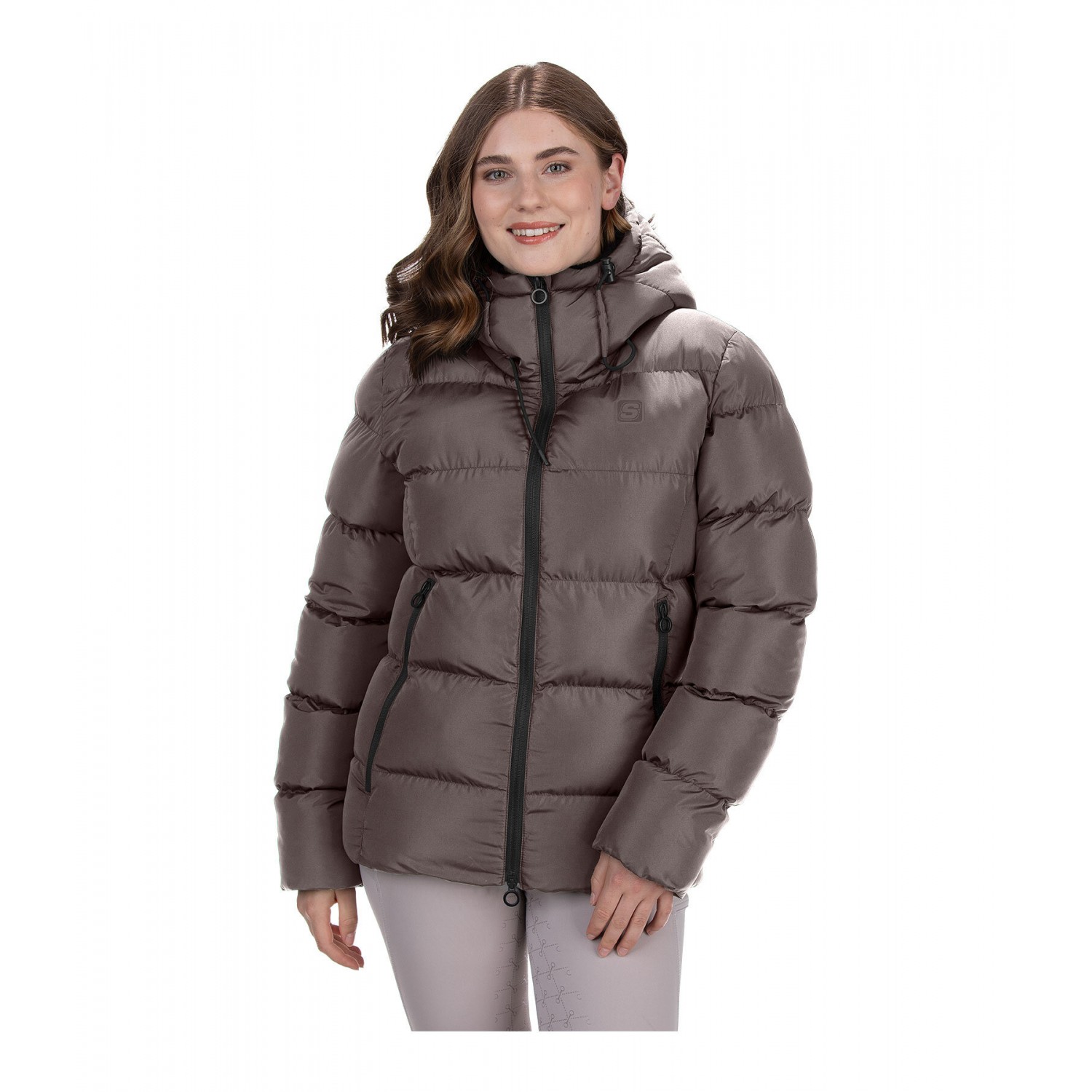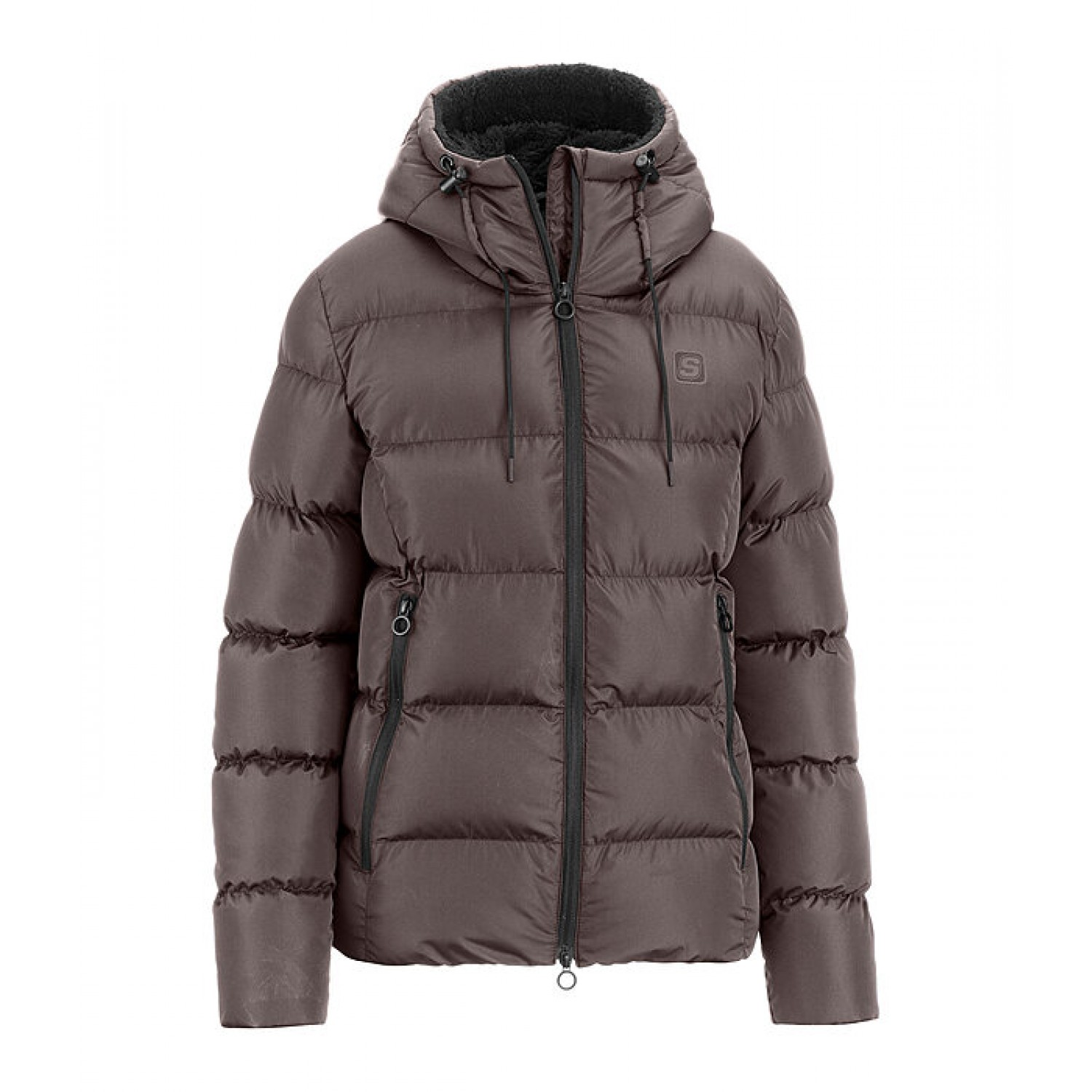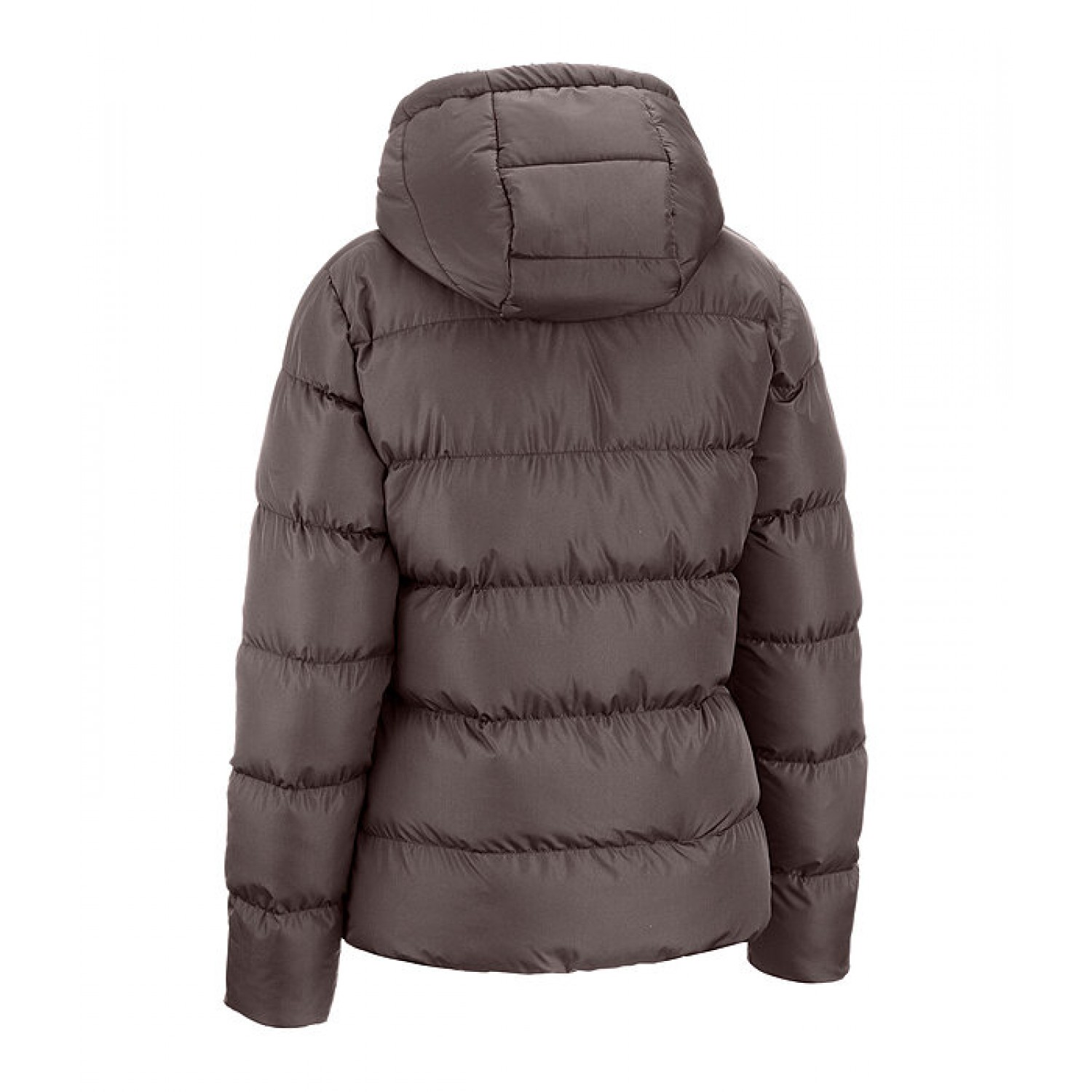 Теплая стеганая куртка с особо мягким наполнителем из искусственного пуха. Очень высокий регулируемый капюшон прикрепляется к спине с помощью кнопки и имеет подкладку из флиса. Двусторонняя молния под подкладкой спереди с защитой подбородка, 2 передних кармана на молнии, 1 внутренний карман, эластичные манжеты и низ, а также значок STEEDS на груди. 100% полиэстер.