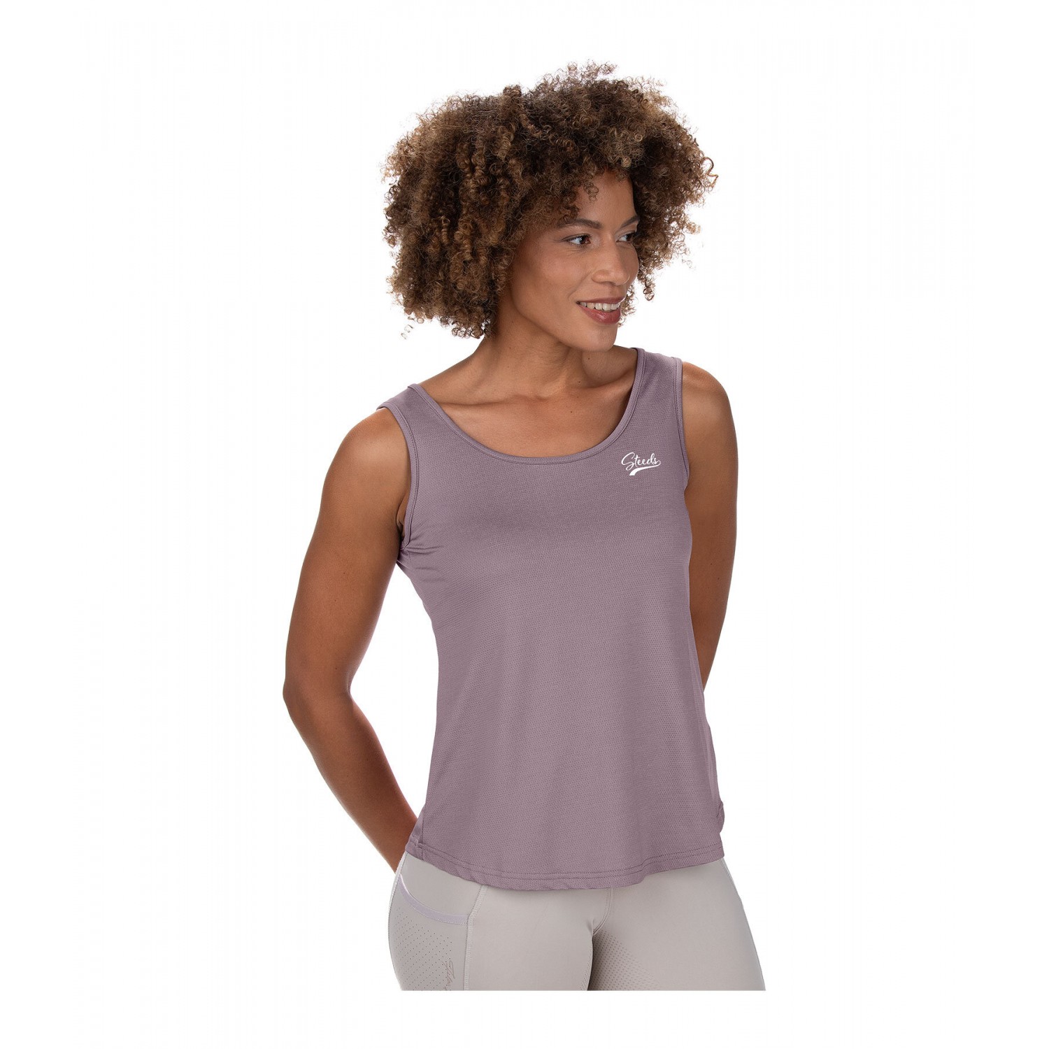 Воздушная функциональная майка с круглым вырезом и принтом STEEDS на груди. Дышащий и быстросохнущий материал. 59% полиамид, 31% полиэстер и 10% эластан.