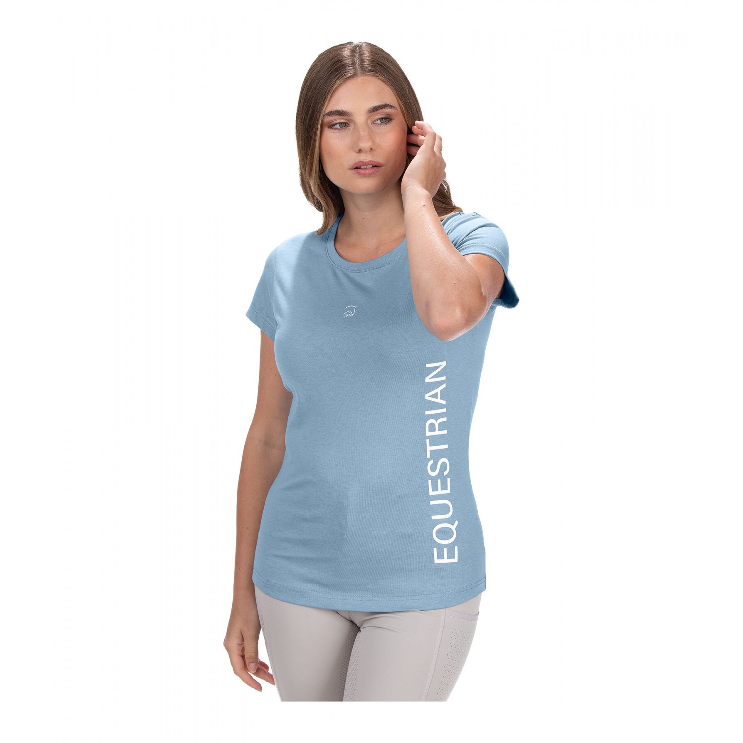 Футболка в модных цветах из комбинированных материалов с дышащими и быстросохнущими свойствами, стильный принт сбоку. 61% полиэстер, 32% хлопок, 7% эластан.
