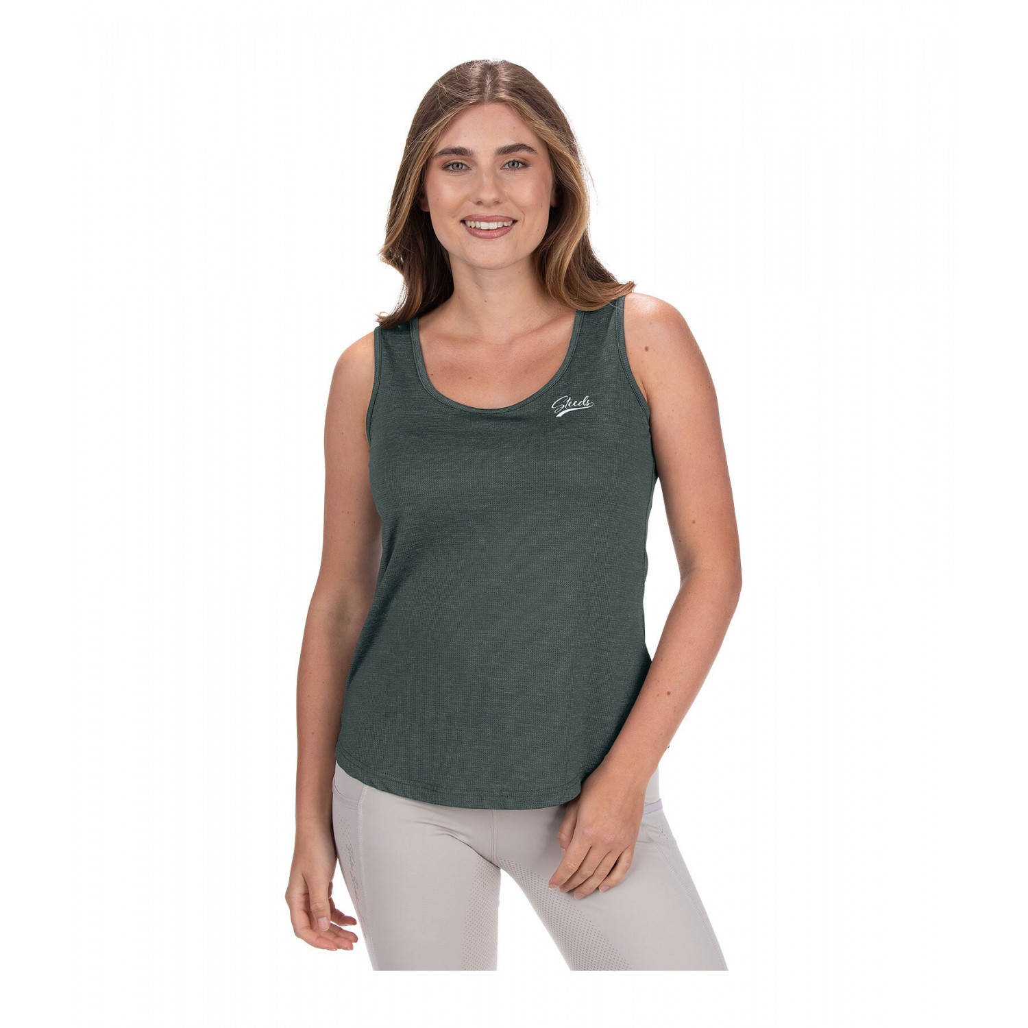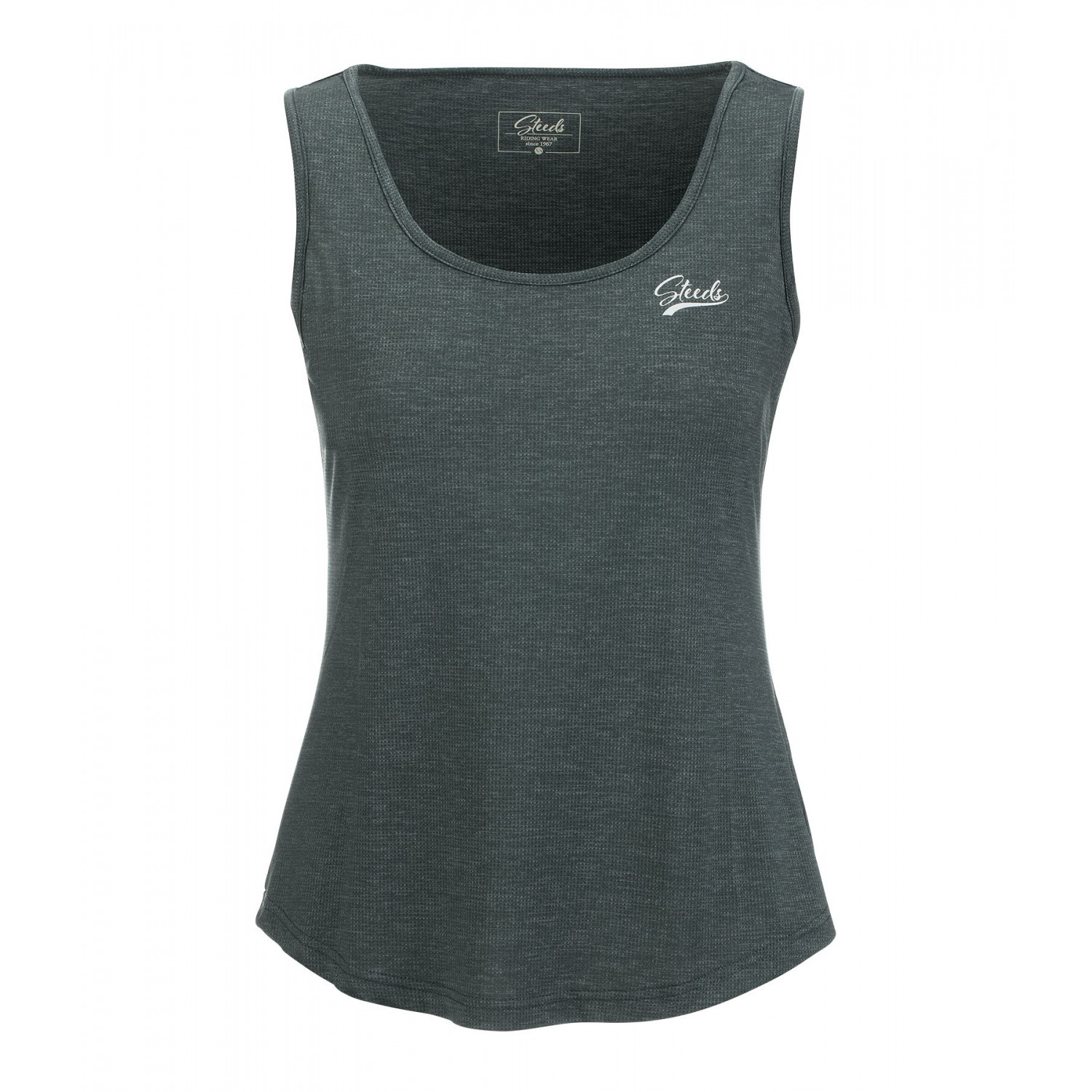 Воздушная функциональная майка с круглым вырезом и принтом STEEDS на груди. Дышащий и быстросохнущий материал. 59% полиамид, 31% полиэстер и 10% эластан.