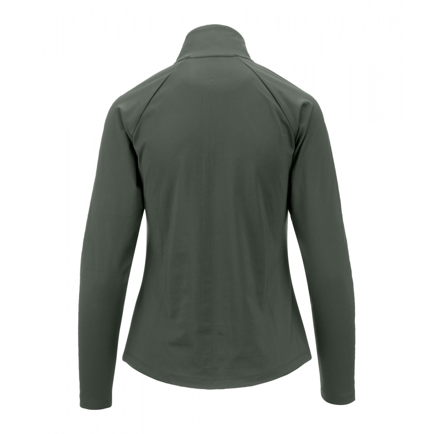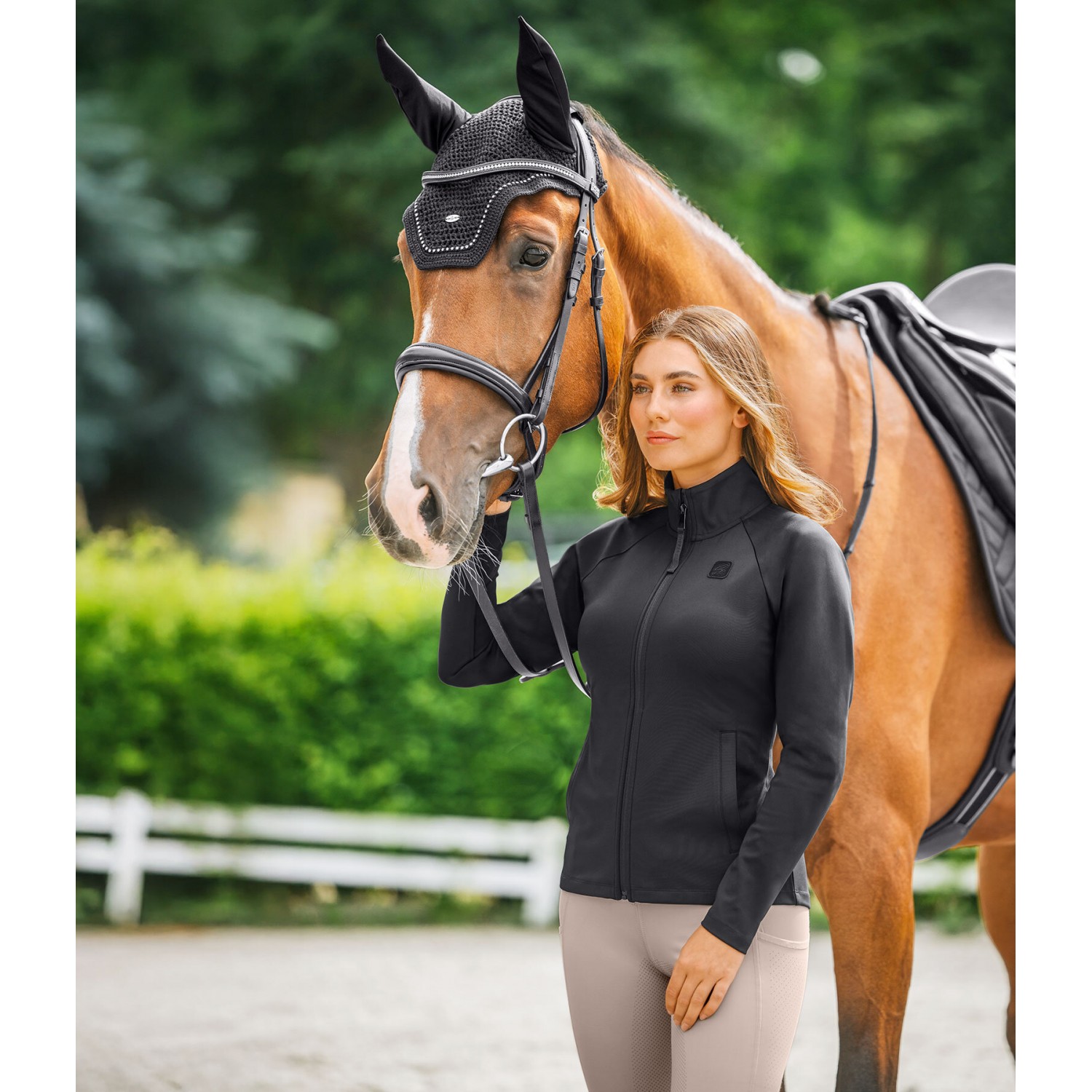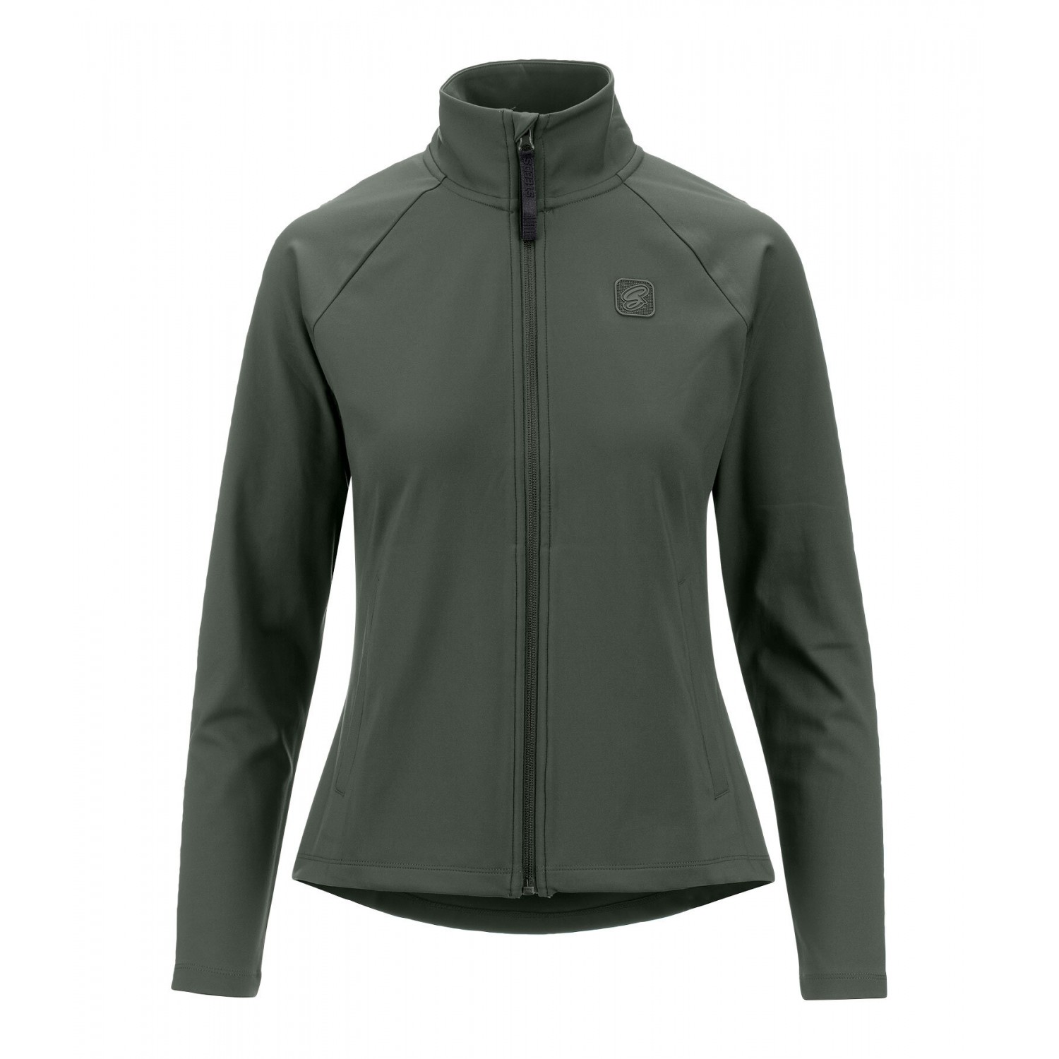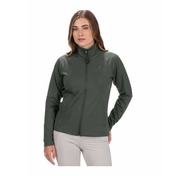 Спортивная эластичная куртка с воротником-стойкой. Дышащая и быстросохнущая. Имеет подкладку, застежку-молнию спереди и защиту подбородка, два передних кармана и логотип на груди. 79% полиэстер, 21% эластан.