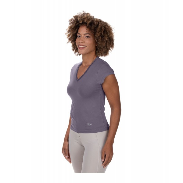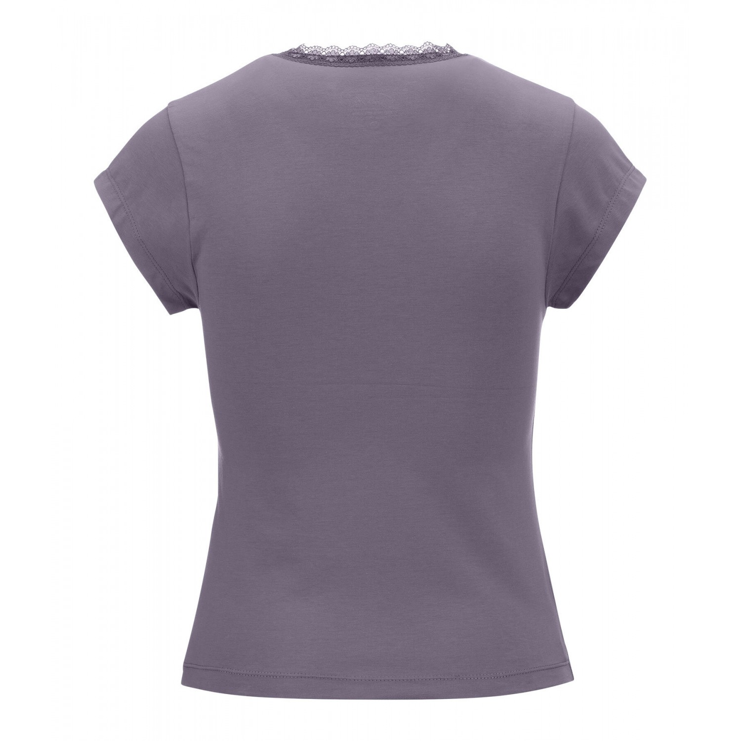 Стильная укороченная футболка с изящной кружевной отделкой. Изготовлена из мягкого, комфортного хлопкового трикотажа. Имеет V-образный вырез и вышивку логотипа на передней части. 95% хлопок, 5% эластан.