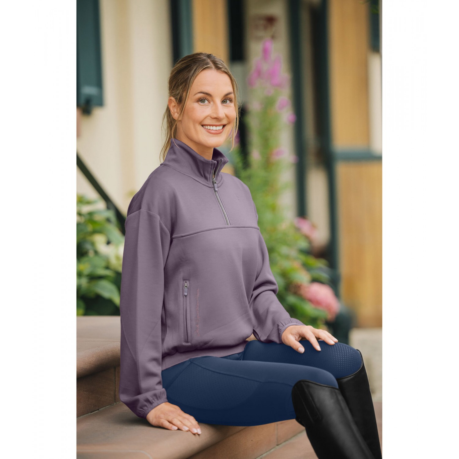 Стильная укороченная толстовка из дышащей и быстросохнущей высококачественной ткани. Имеет воротник-стойку и застежку на молнию, а также два передних кармана на молнии. Эластичные манжеты и нижний край обеспечивают удобную и современную посадку. Состав: 83% полиэстер, 12% вискоза, 5% эластан.
