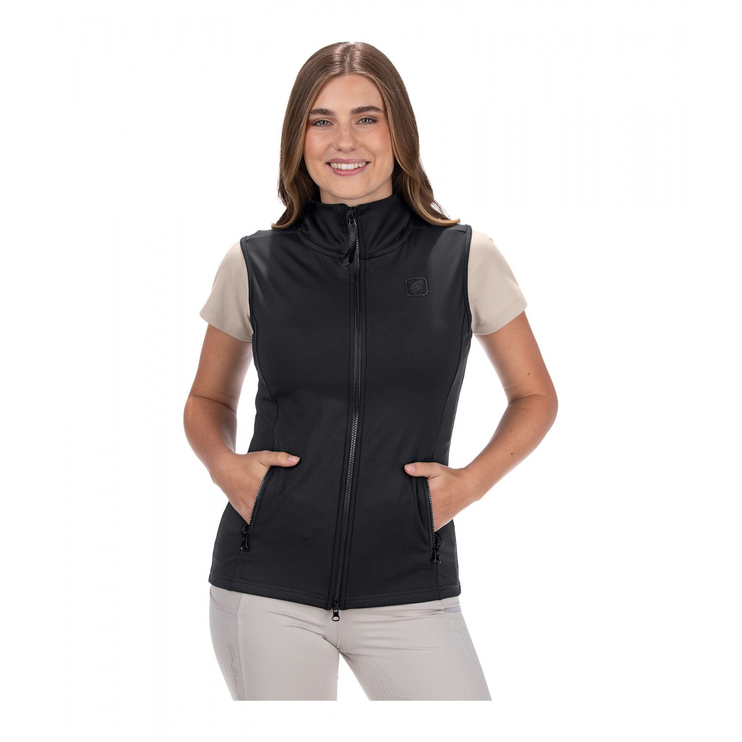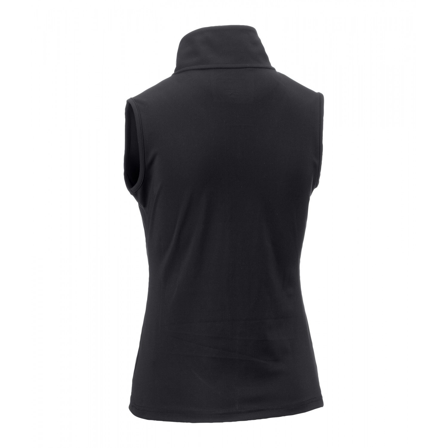 Жилет со стоячим воротником из высококачественной эластичной ткани, растягивающейся в четырех направлениях. Дышащий и быстросохнущий. Имеет подкладку на передней молнии с защитой подбородка, два передних кармана на молнии и логотип на груди. 79% полиэстер, 21% эластан.