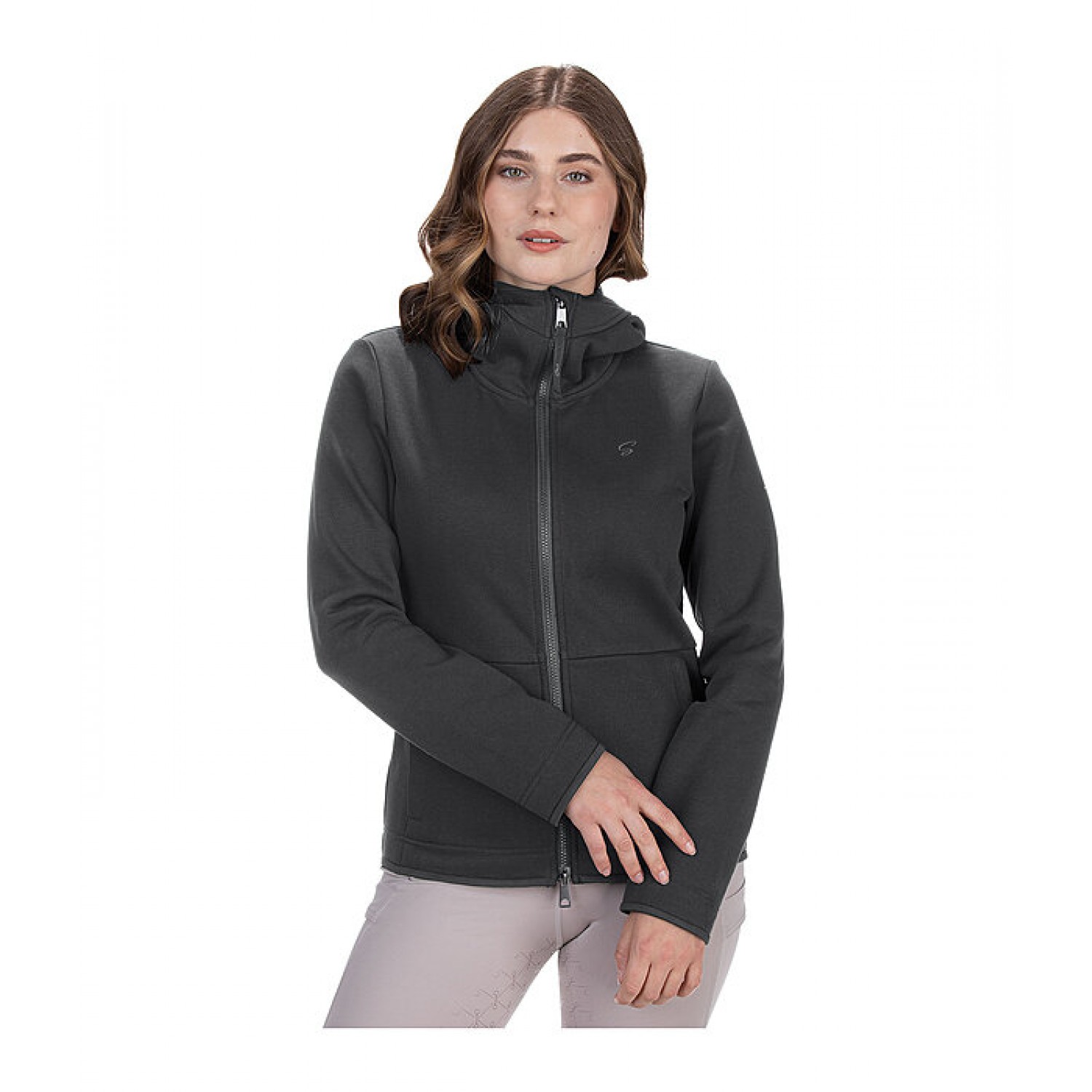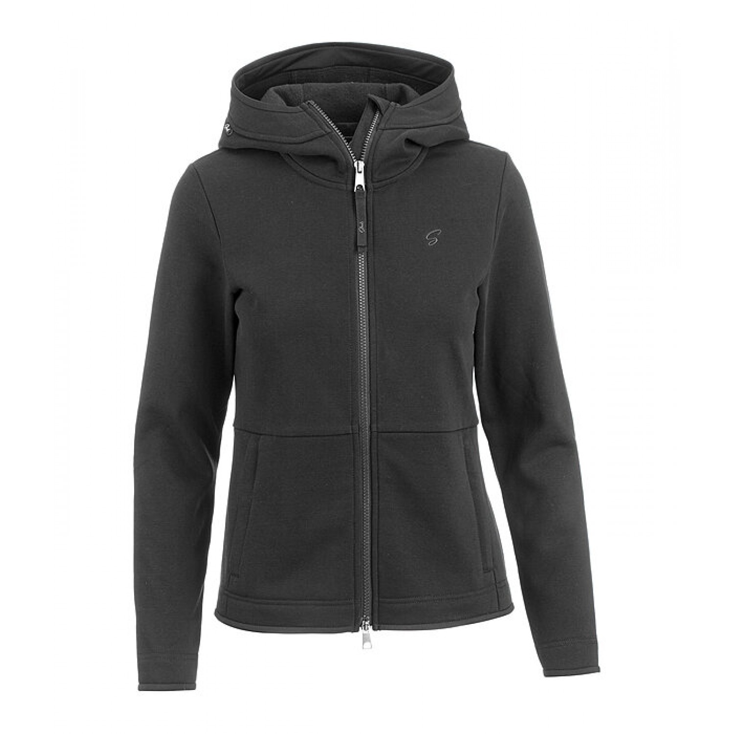 Куртка с капюшоном из высококачественного хлопкового эластичного материала. Высокий капюшон и большие передние карманы на молнии, двусторонняя молния на подкладке с защитой подбородка. Состав: 70% хлопок, 30% полиэстер.