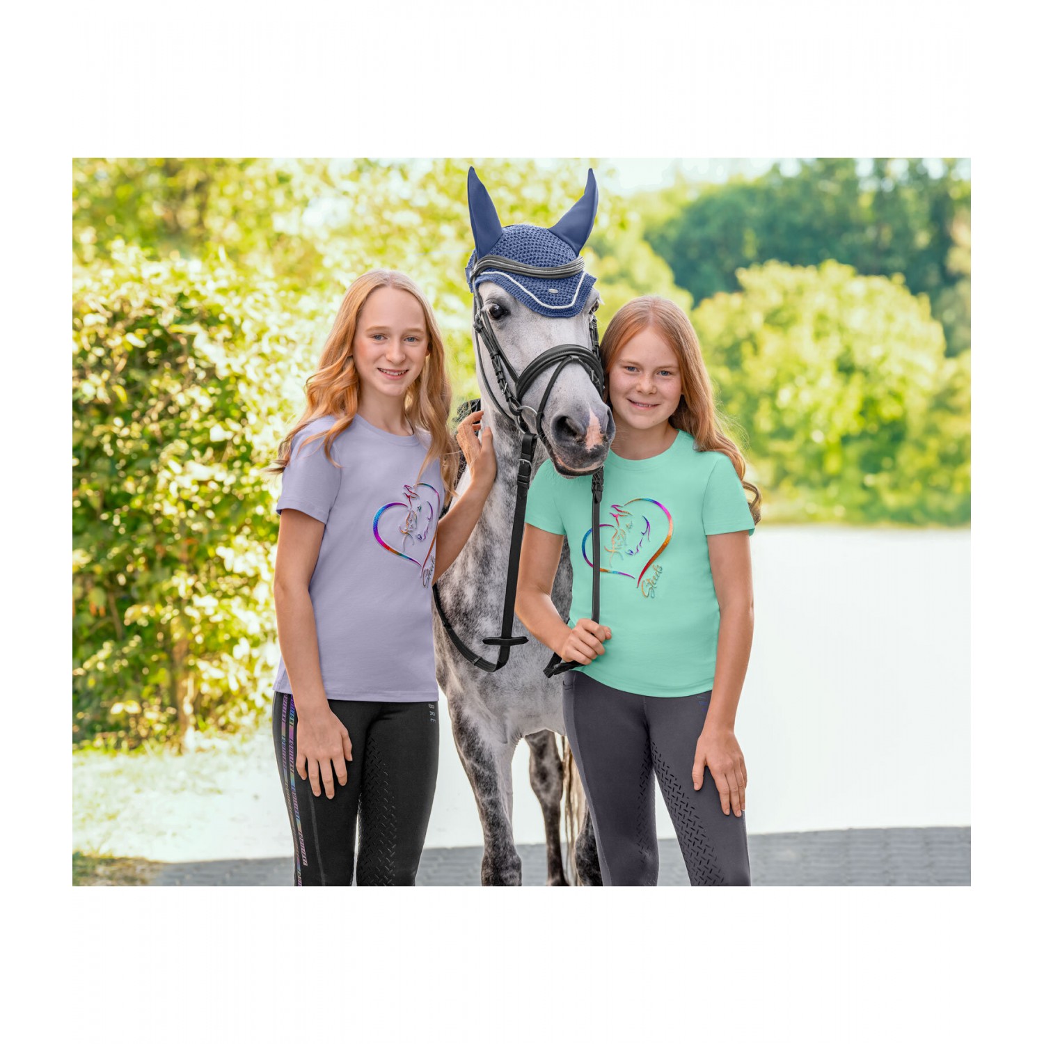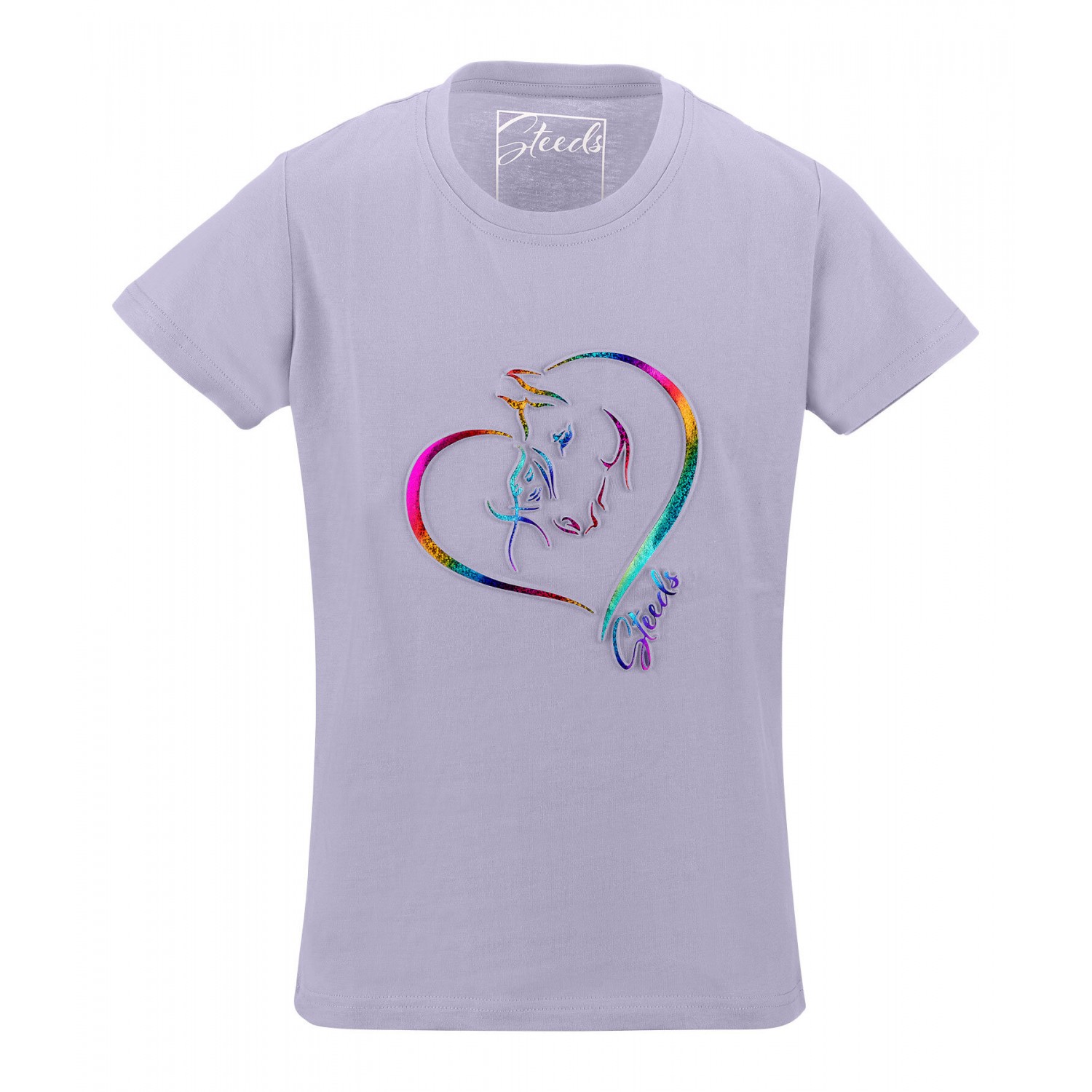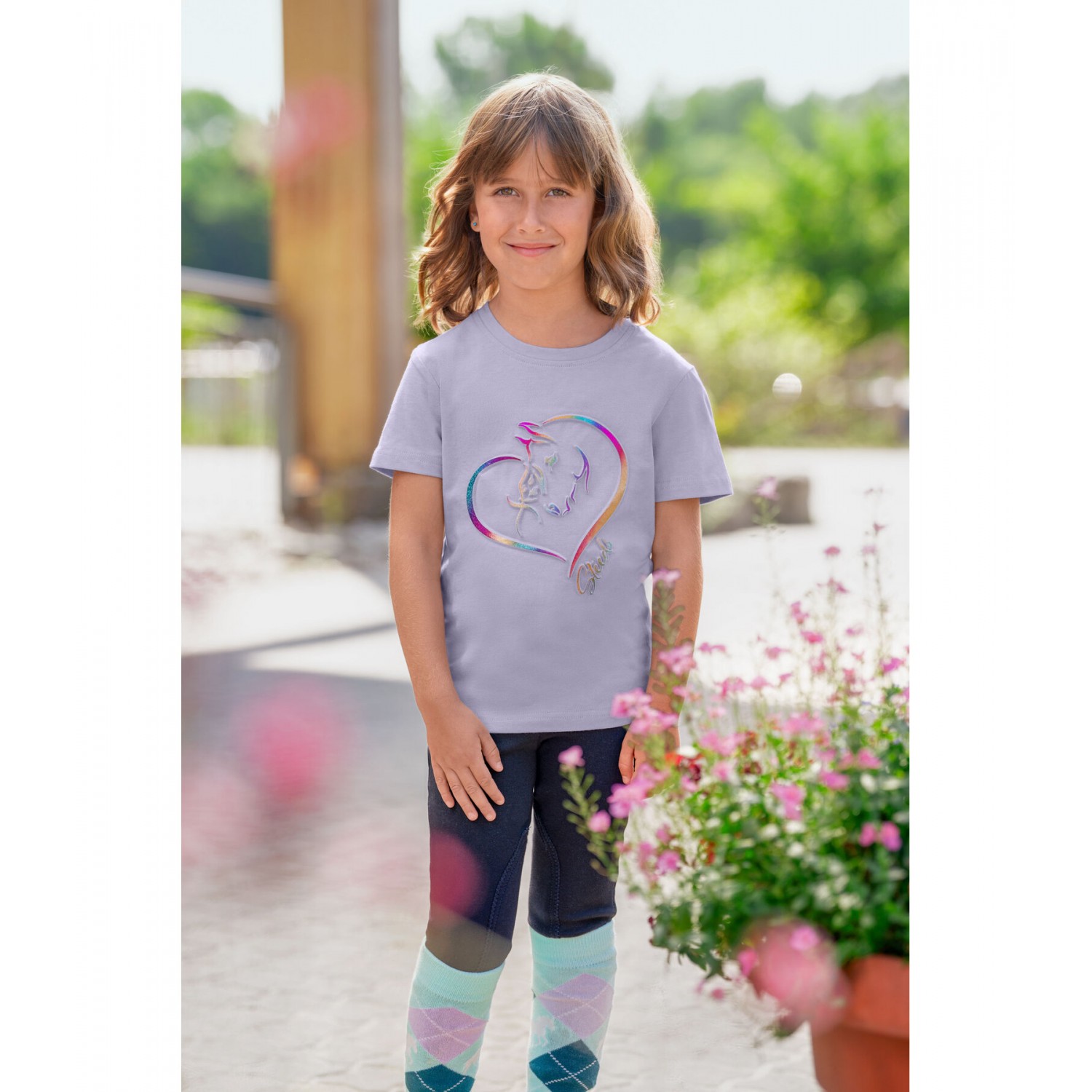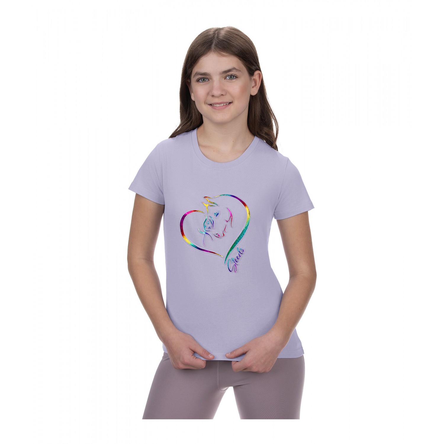 Красивая футболка с круглым вырезом и модным романтическим рельефным принтом на груди. 100% хлопок.