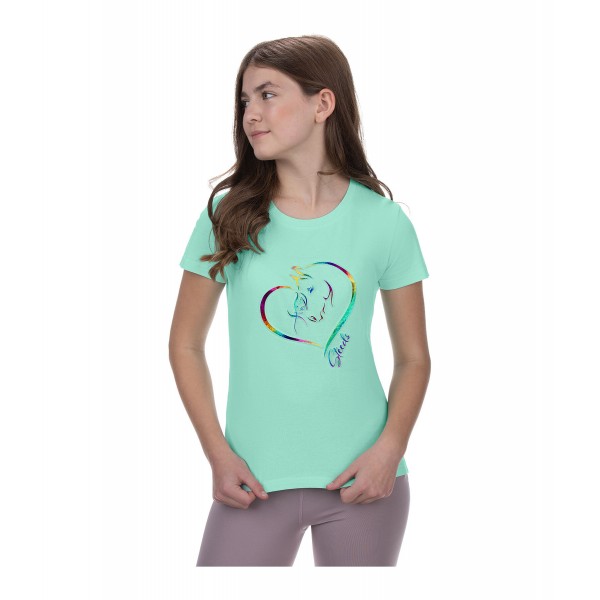 Красивая футболка с круглым вырезом и модным романтическим рельефным принтом на груди. 100% хлопок.