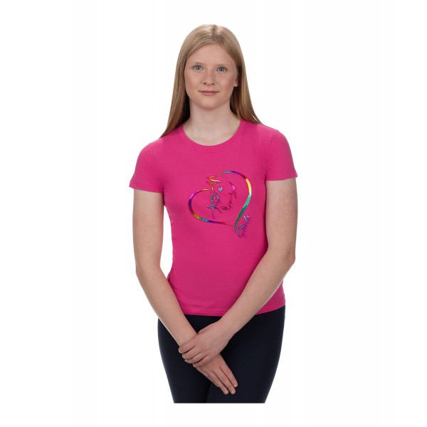 Красивая футболка с круглым вырезом и модным романтическим рельефным принтом на груди. 100% хлопок.