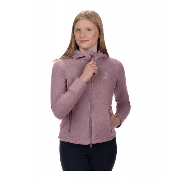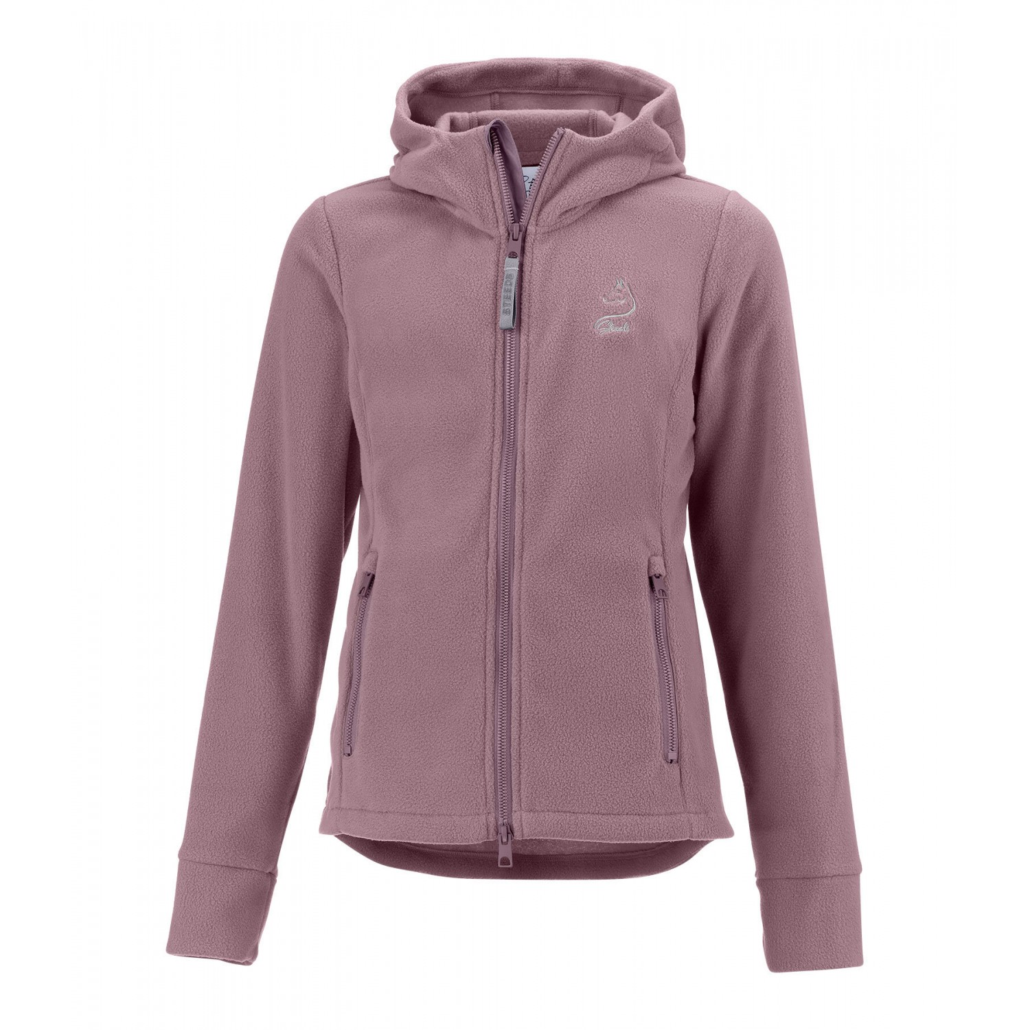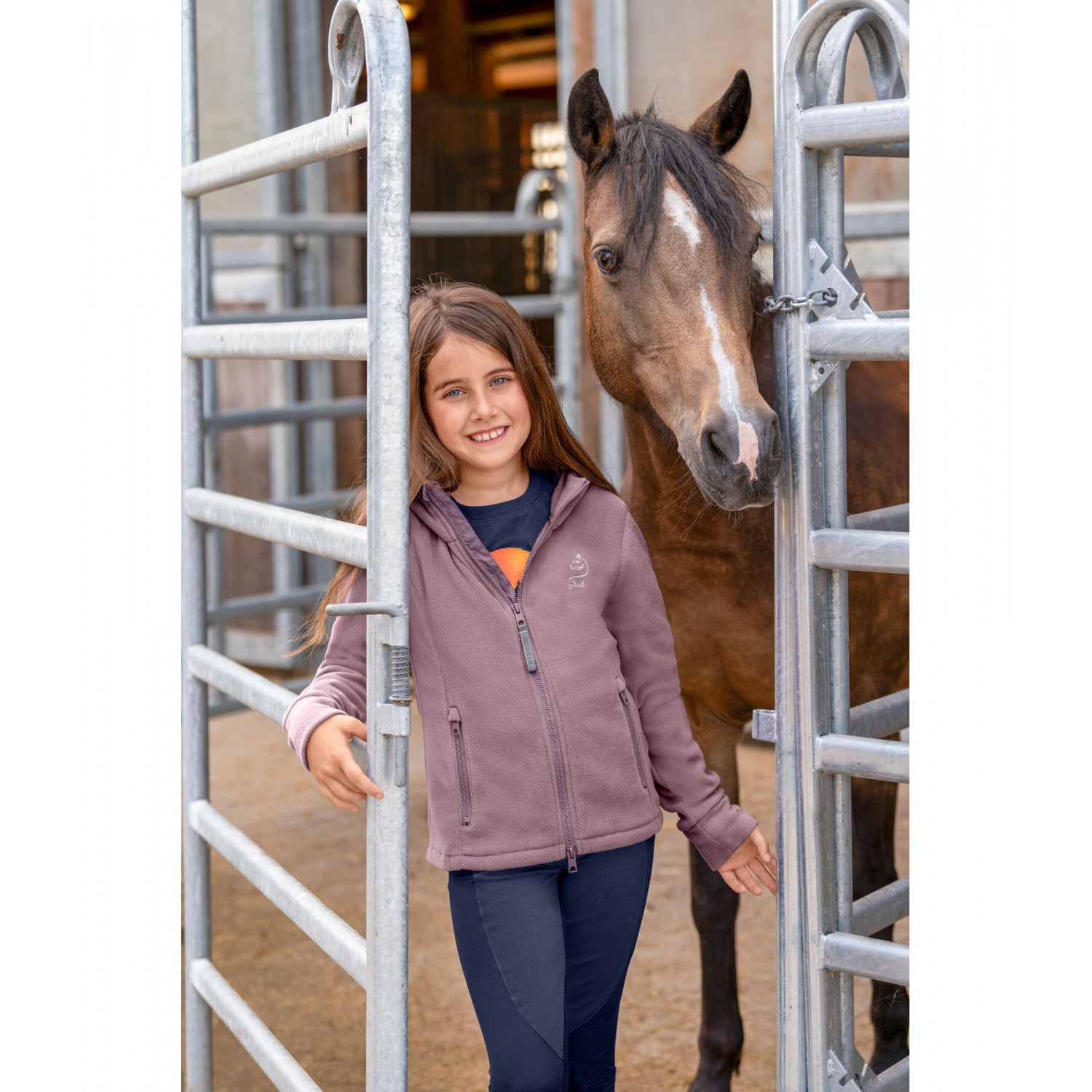 Флисовая куртка для детей с высоко застегивающимся капюшоном. Сзади слегка удлиненная модель, двухсторонняя молния спереди с защитой подбородка, 2 передних кармана на молнии и вышивка STEEDS на груди. С обработкой против образования катышков. 100% полиэстер.
