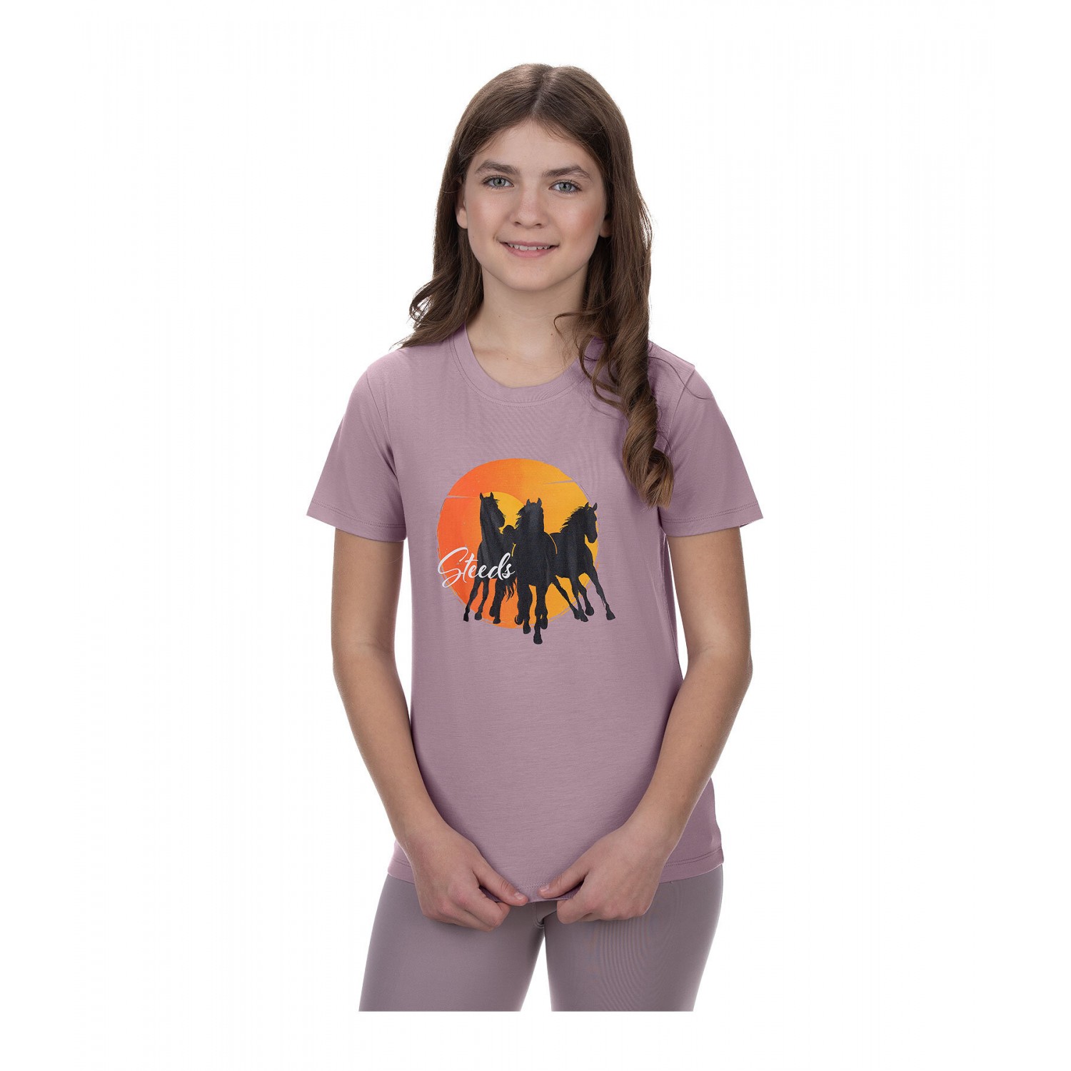 Футболка из комбинированных материалов с дышащими и быстросохнущими свойствами, включая стильный принт с лошадью по центру. 61% полиэстер, 32% хлопок, 7% эластан.