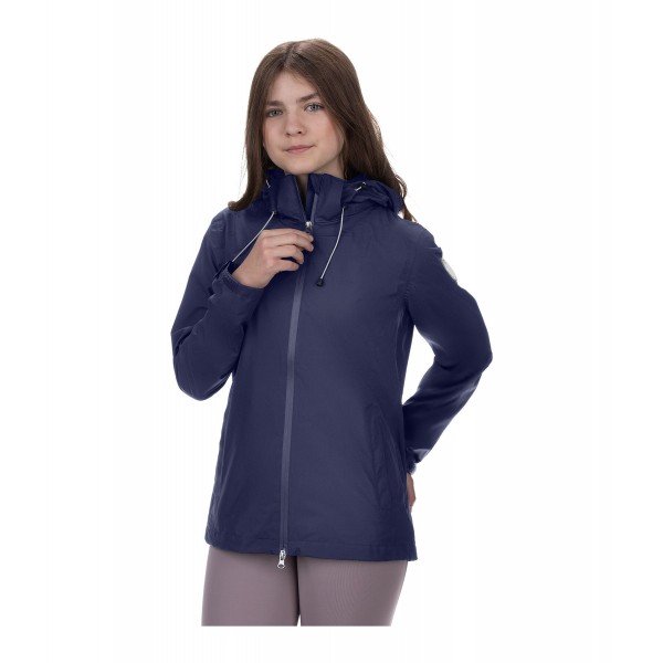 Детская водонепроницаемая и ветрозащитная куртка из дышащего материала. Имеет высокий воротник, убирающийся капюшон, водонепроницаемую двустороннюю молнию с защитой подбородка и регулируемые манжеты. Два кармана на кнопках и логотип STEEDS дополняют образ. 100% полиэстер.