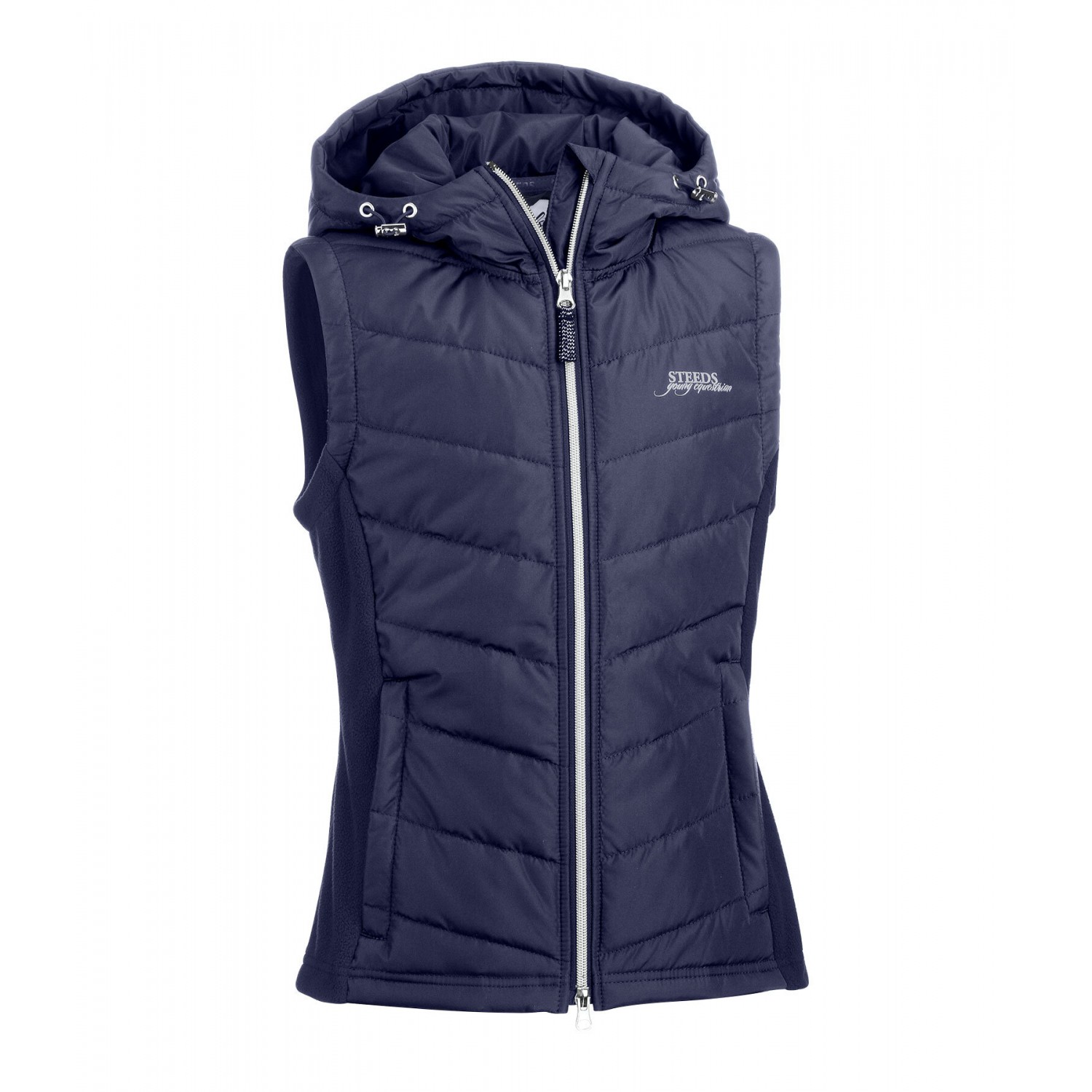 Мягкий и уютный жилет для детей, изготовленный из мягкого флиса и стеганого, слегка утепленного микрофибрового материала спереди. Флисовая спинка и боковые панели делают жилет особенно уютным и комфортным. Имеет регулируемый капюшон, который застегивается сзади на кнопки, двустороннюю переднюю молнию с защитой подбородка, два потайных передних кармана и вышитый логотип на груди. 100% полиэстер.