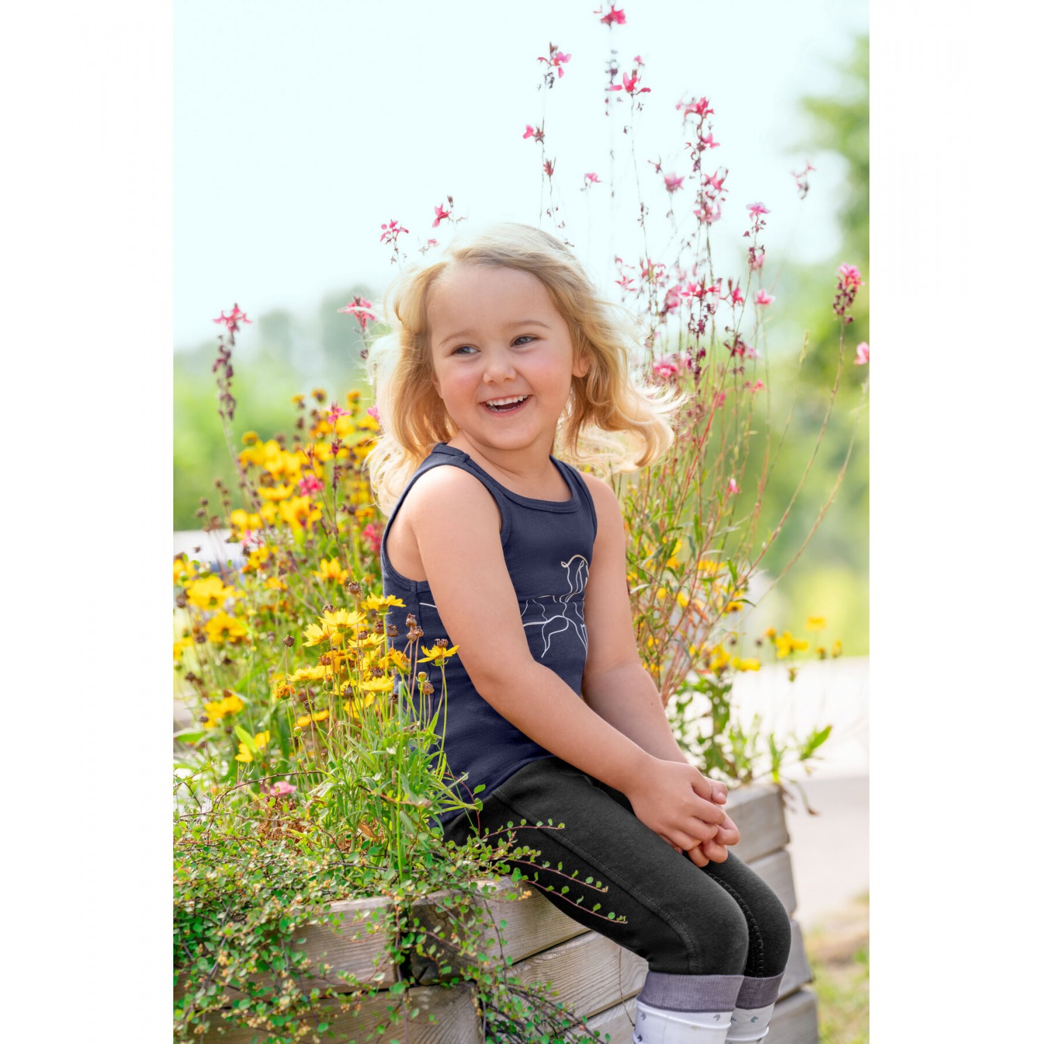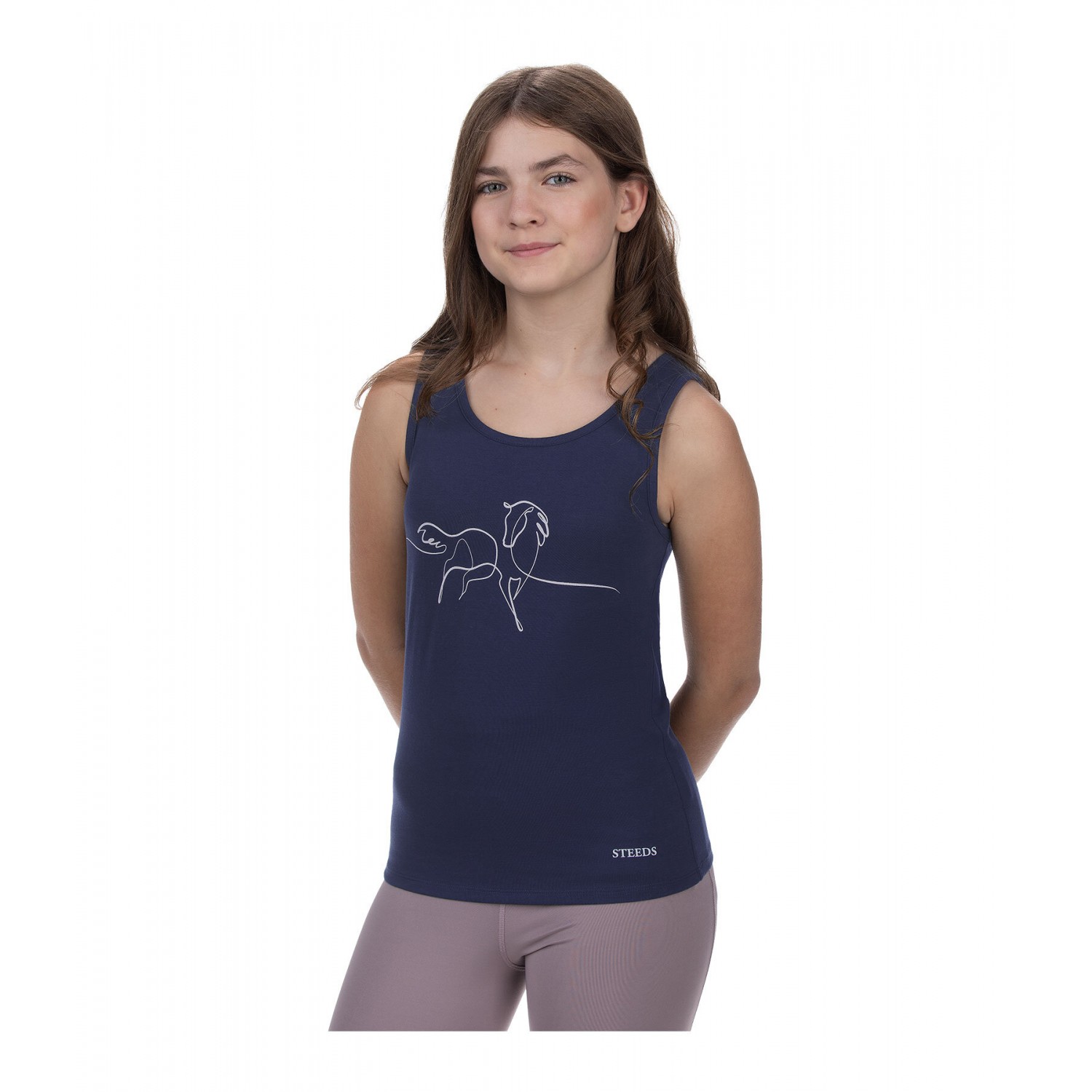Детская майка из мягкой, дышащей ткани – ваша новая универсальная вещь на каждый день. В последних трендовых цветах STEEDS с принтом лошади на передней части. 61% полиэстер, 32% хлопок, 7% эластан.
