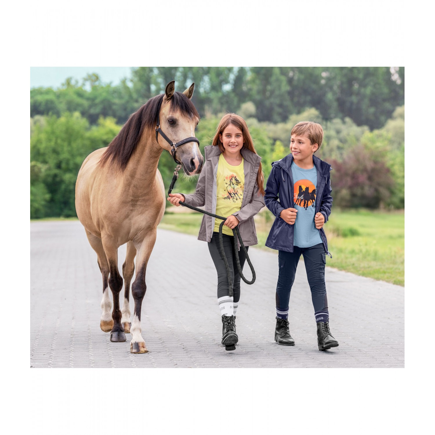 Детская водонепроницаемая и ветрозащитная куртка из дышащего материала. Имеет высокий воротник, убирающийся капюшон, водонепроницаемую двустороннюю молнию с защитой подбородка и регулируемые манжеты. Два кармана на кнопках и логотип STEEDS дополняют образ. 100% полиэстер.