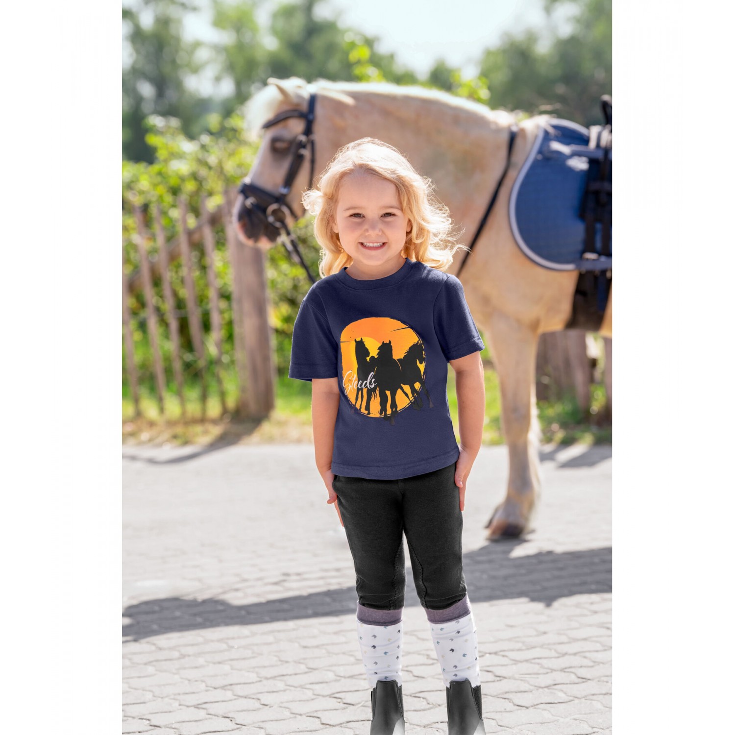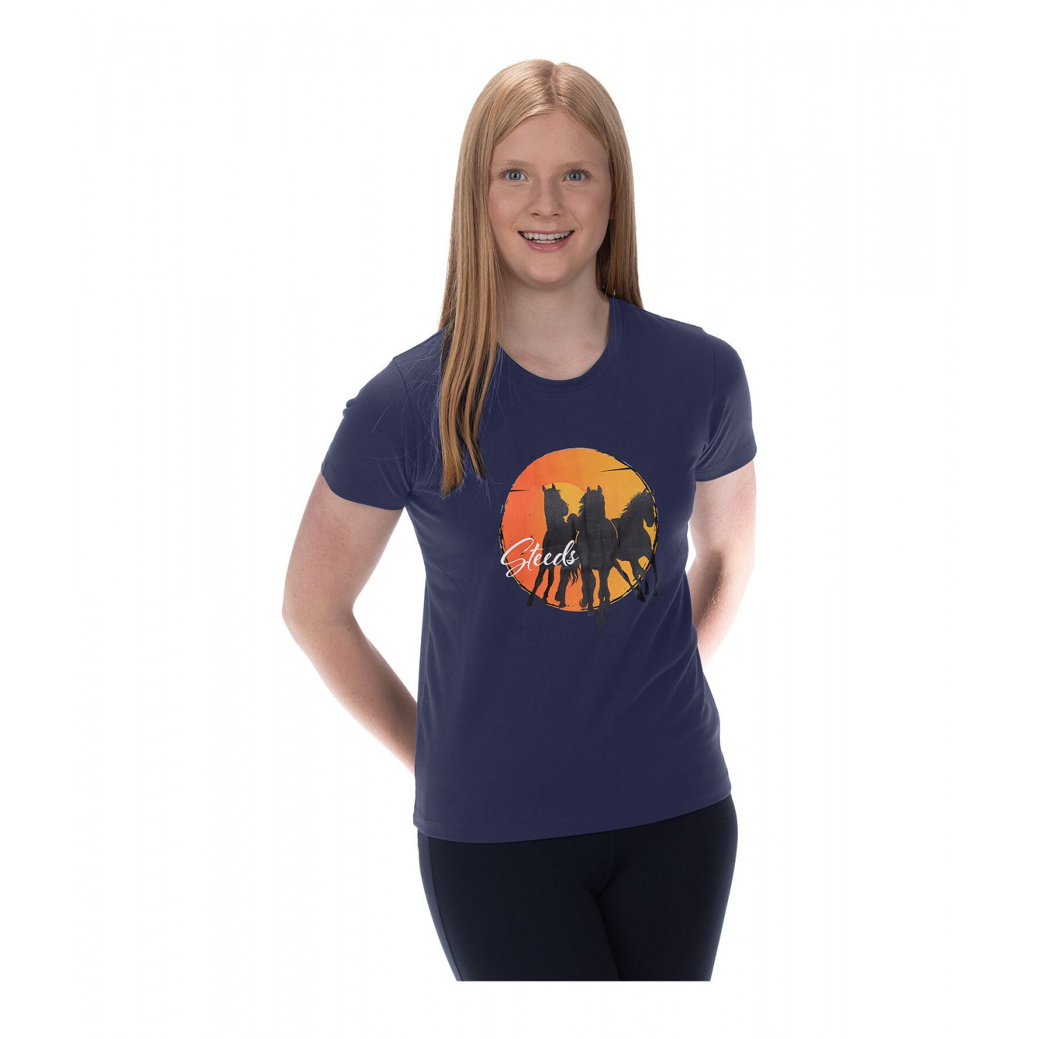 Футболка из комбинированных материалов с дышащими и быстросохнущими свойствами, включая стильный принт с лошадью по центру. 61% полиэстер, 32% хлопок, 7% эластан.