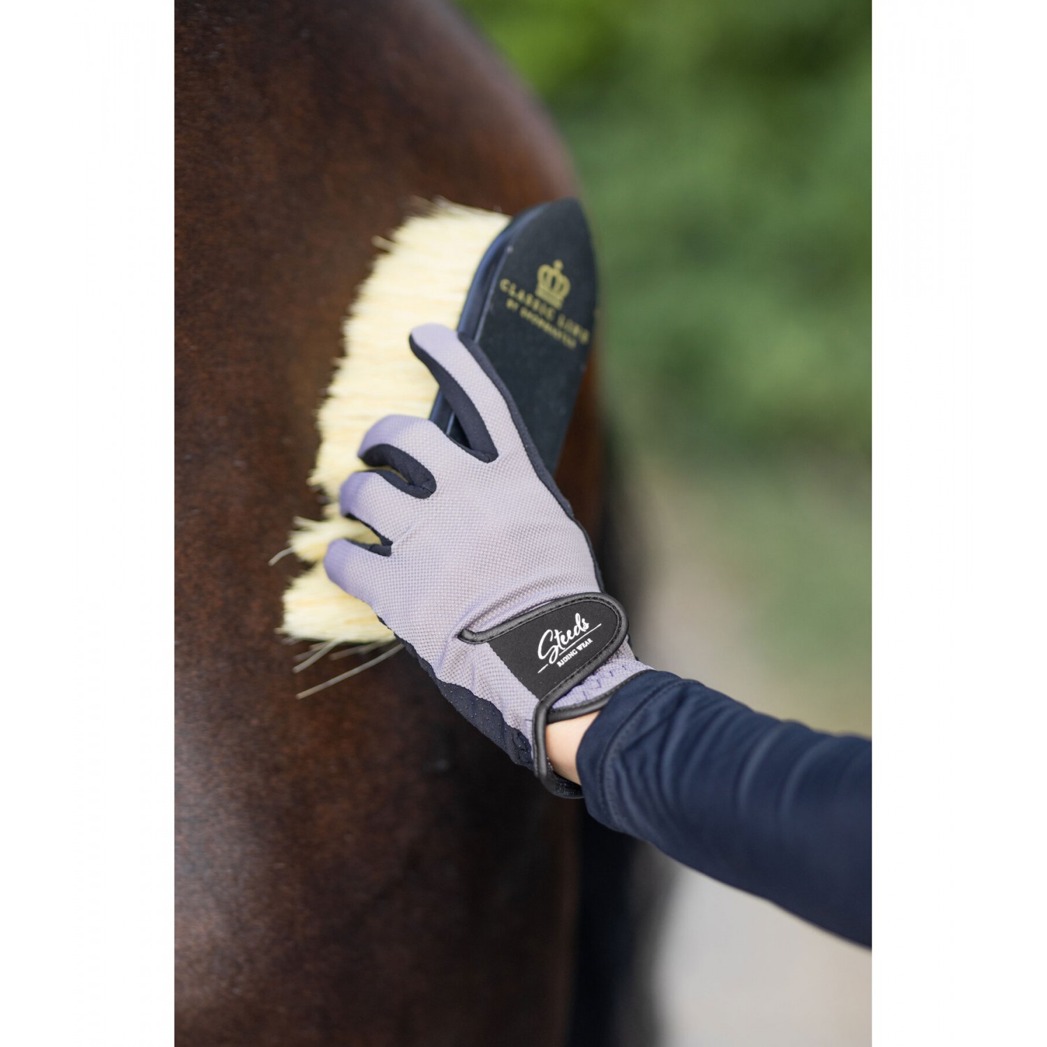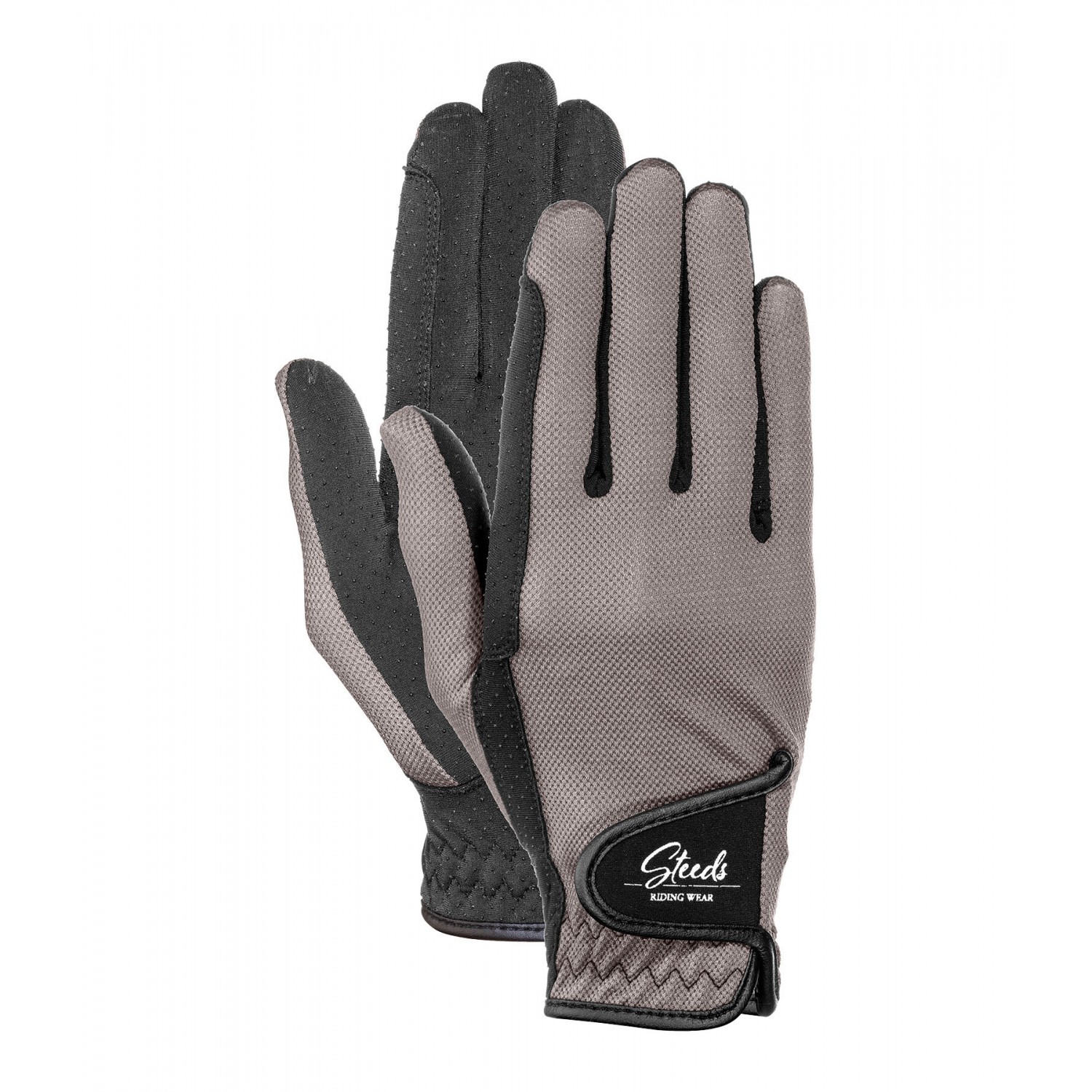 Летние перчатки для верховой езды с застежкой-липучкой на тыльной стороне. Легкая сетчатая ткань пропускает воздух и придает перчаткам спортивный вид. Силиконовый принт на ладони обеспечивает оптимальное сцепление. Тыльная сторона ладони: 80% полиамид, 20% эластан; ладонь: 85% полиэстер, 15% эластан.