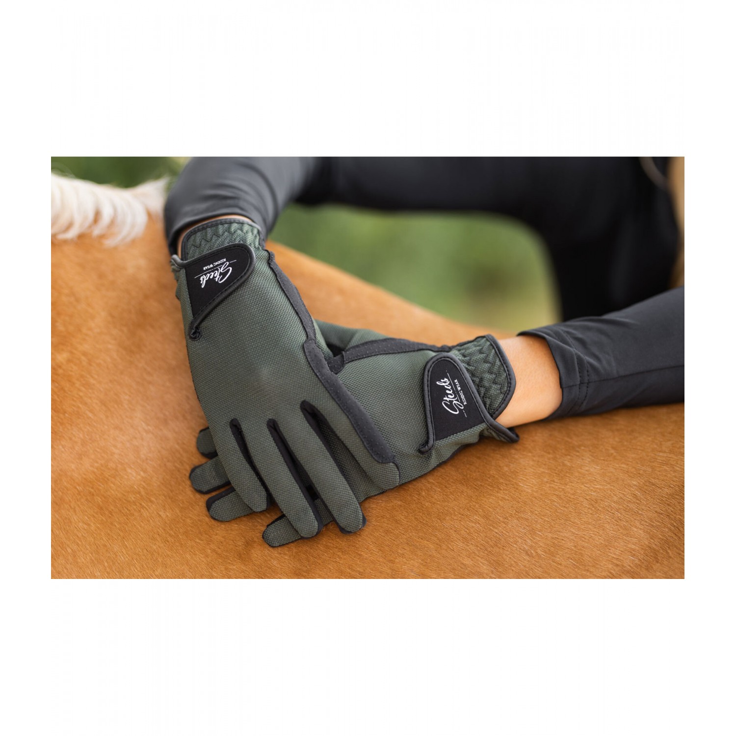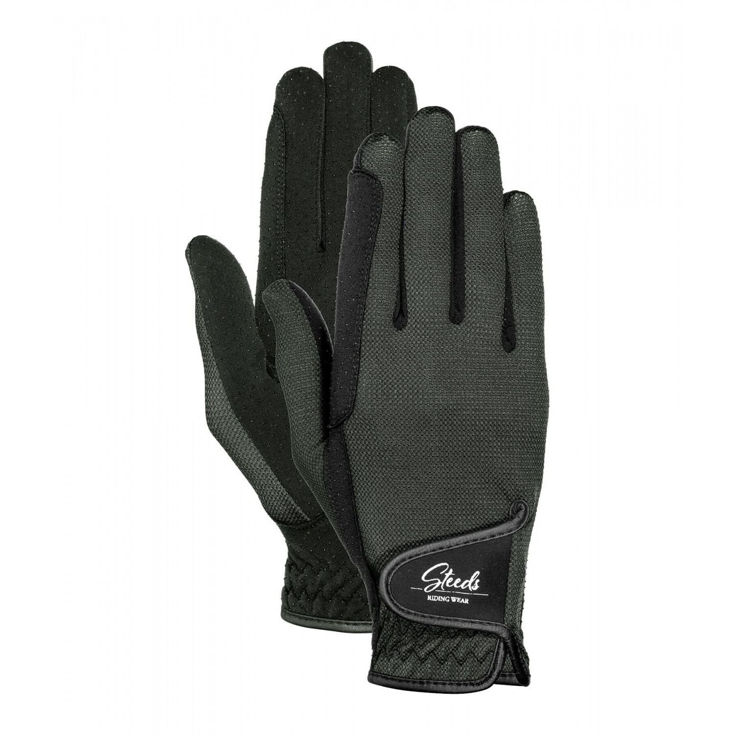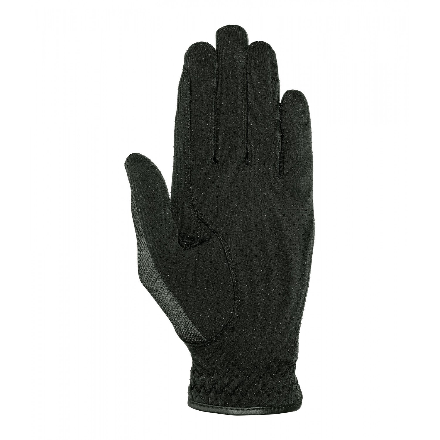 Летние перчатки для верховой езды с застежкой-липучкой на тыльной стороне. Легкая сетчатая ткань пропускает воздух и придает перчаткам спортивный вид. Силиконовый принт на ладони обеспечивает оптимальное сцепление. Тыльная сторона ладони: 80% полиамид, 20% эластан; ладонь: 85% полиэстер, 15% эластан.