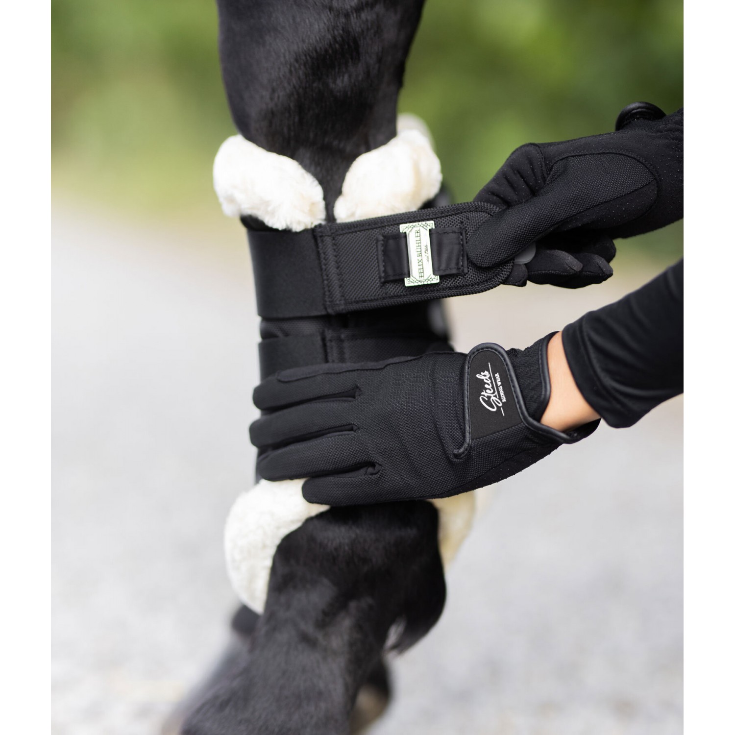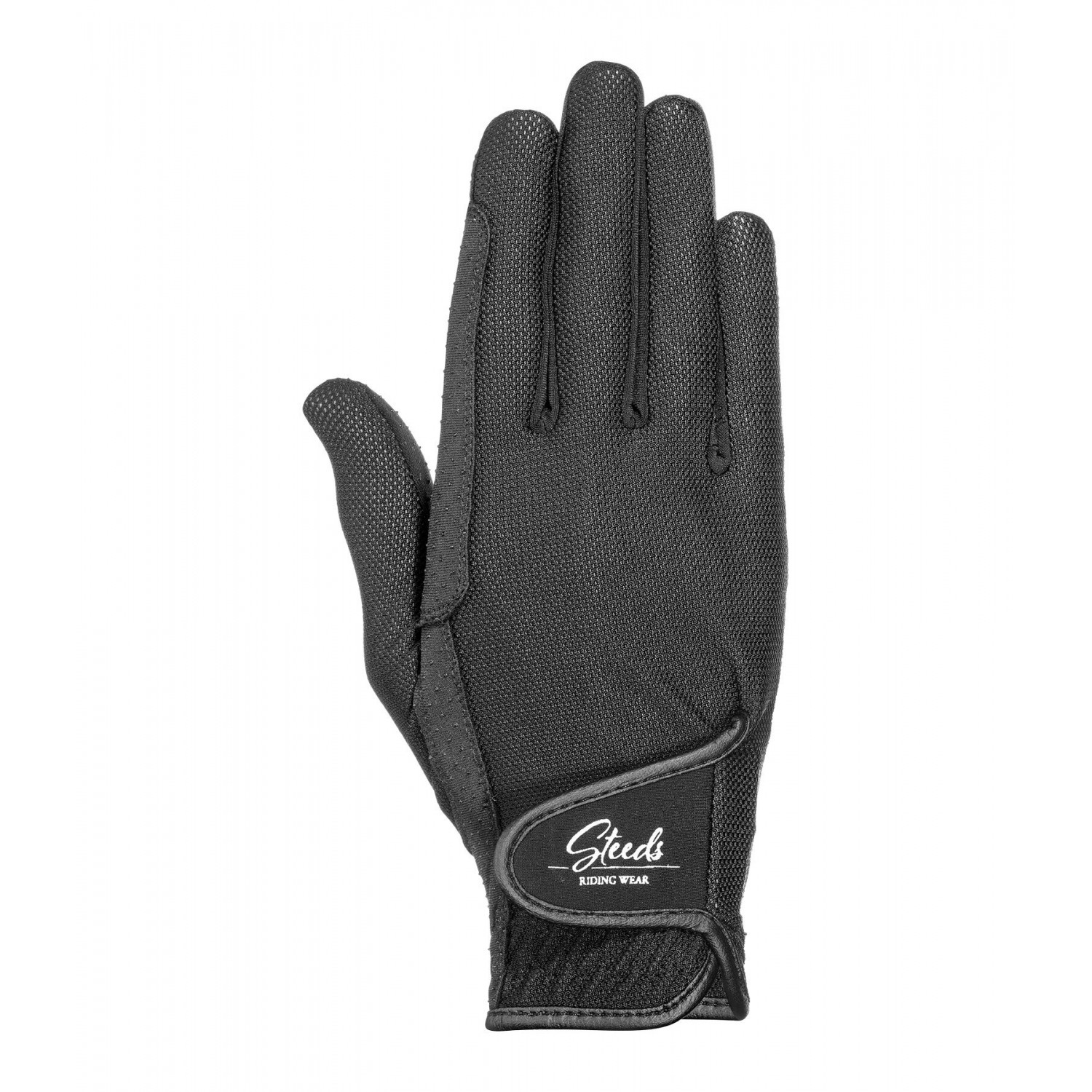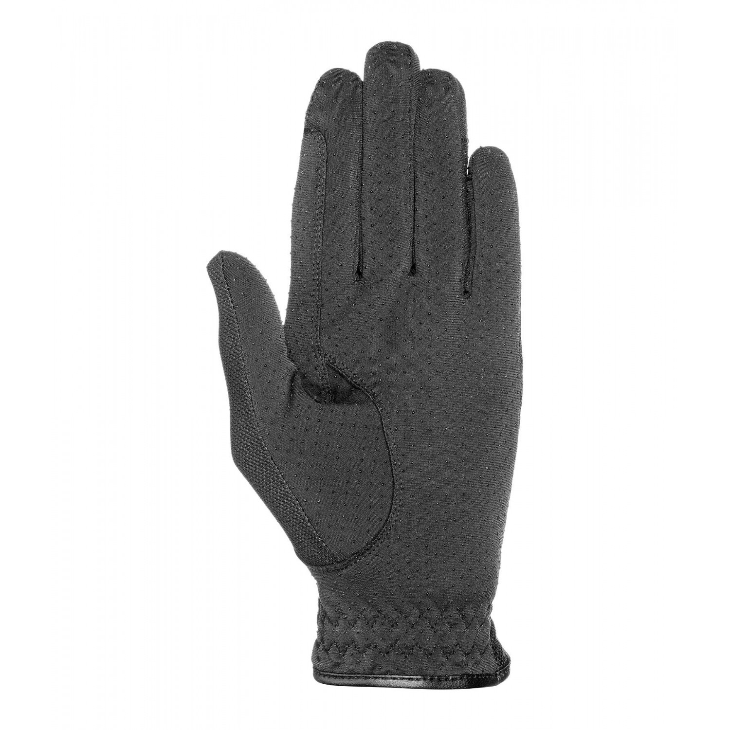 Летние перчатки для верховой езды с застежкой-липучкой на тыльной стороне. Легкая сетчатая ткань пропускает воздух и придает перчаткам спортивный вид. Силиконовый принт на ладони обеспечивает оптимальное сцепление. Тыльная сторона ладони: 80% полиамид, 20% эластан; ладонь: 85% полиэстер, 15% эластан.