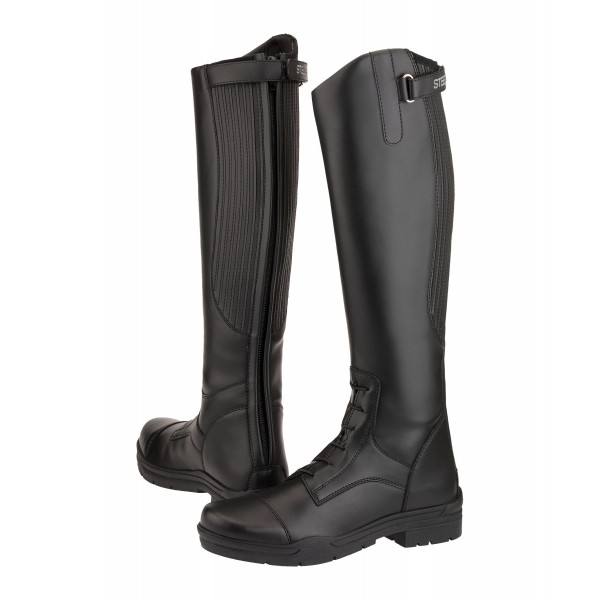 Прочные сапоги для верховой езды по пересеченной местности и работы в конюшне. Верх выполнен из мягкой SYLKA (высокоэффективная, легко чистящаяся синтетическая кожа), а подкладка — из дышащей текстильной ткани (100% полиэстер). Скрытые эластичные вставки по бокам вдоль длинной молнии YKK сзади позволяют регулировать сапоги по форме голени. Эластичная шнуровка на подъеме обеспечивает оптимальную посадку. Прочная профилированная подошва с каблуком, подходящим для верховой езды, изготовлена из нескользящей резины.