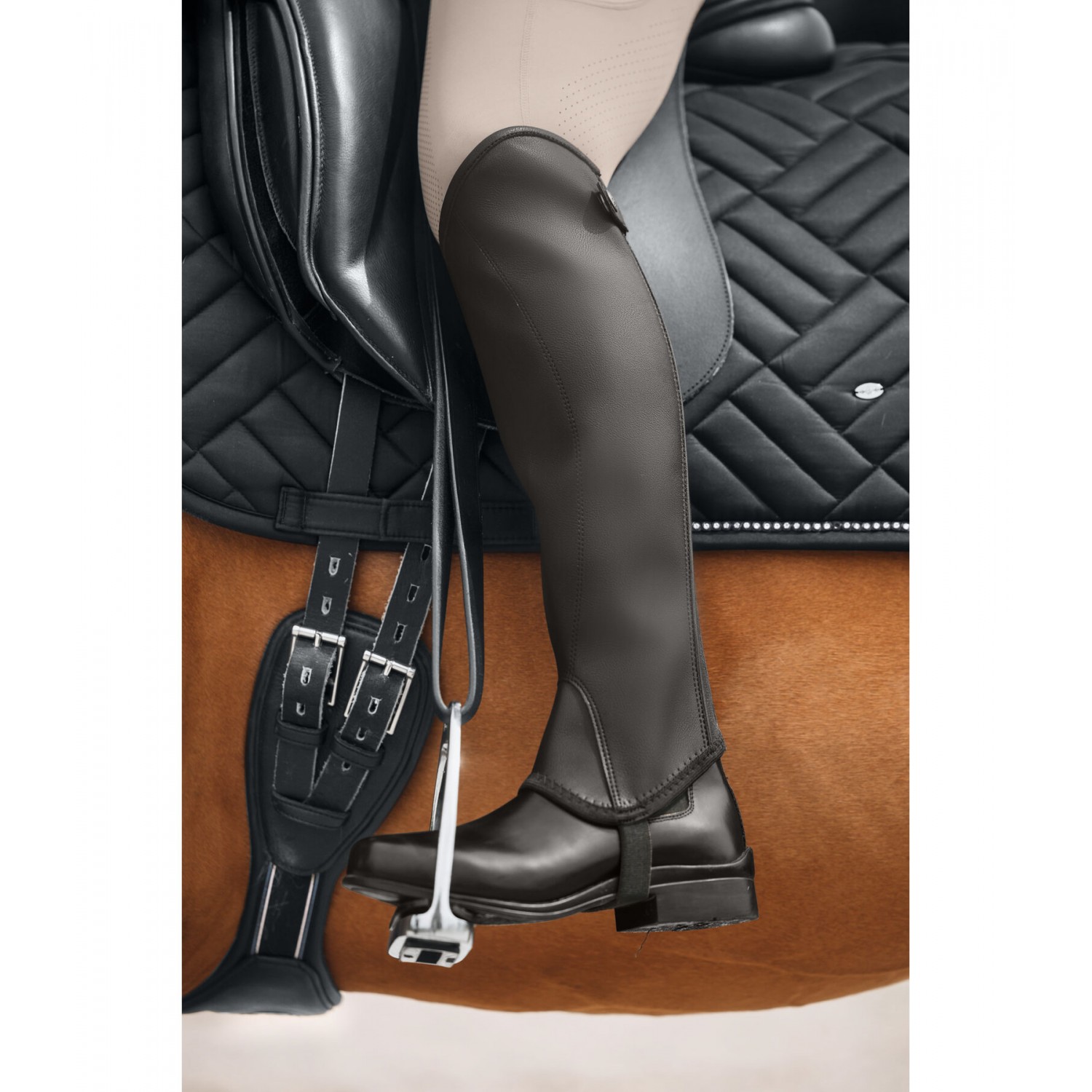 Мягкие, но прочные краги, напоминающие голенище сапога, с особо цепкой синтетической кожей для оптимального контакта с крылом седла! Прочная молния YKK сзади с застежкой-кнопкой и встроенной эластичной вставкой для идеальной посадки.
