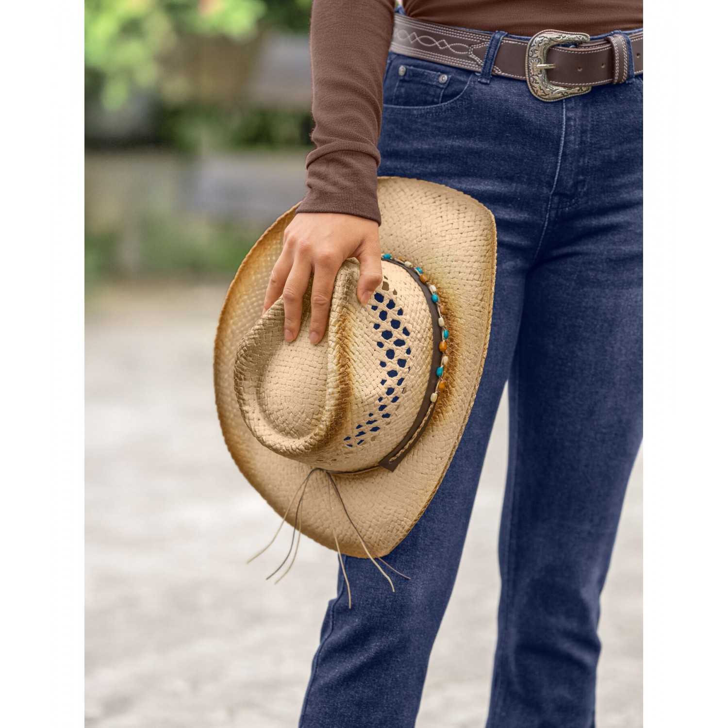 Стильная ковбойская шляпа с лентой, украшенной жемчугом.