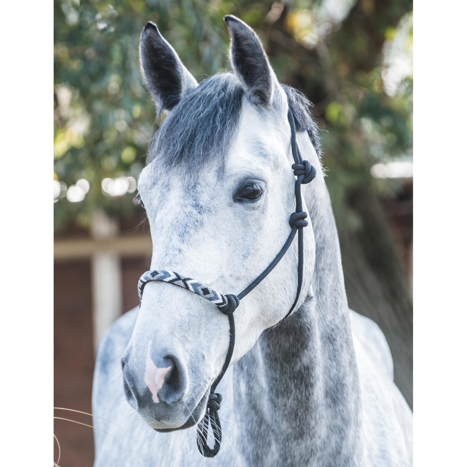Красивый, прочный недоуздок с великолепным узором из бусинок. Толщина шнуров 8 мм. 100% полипропилен.