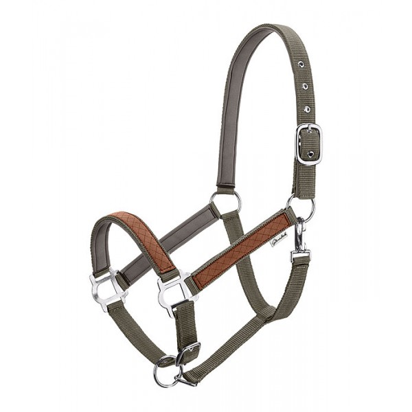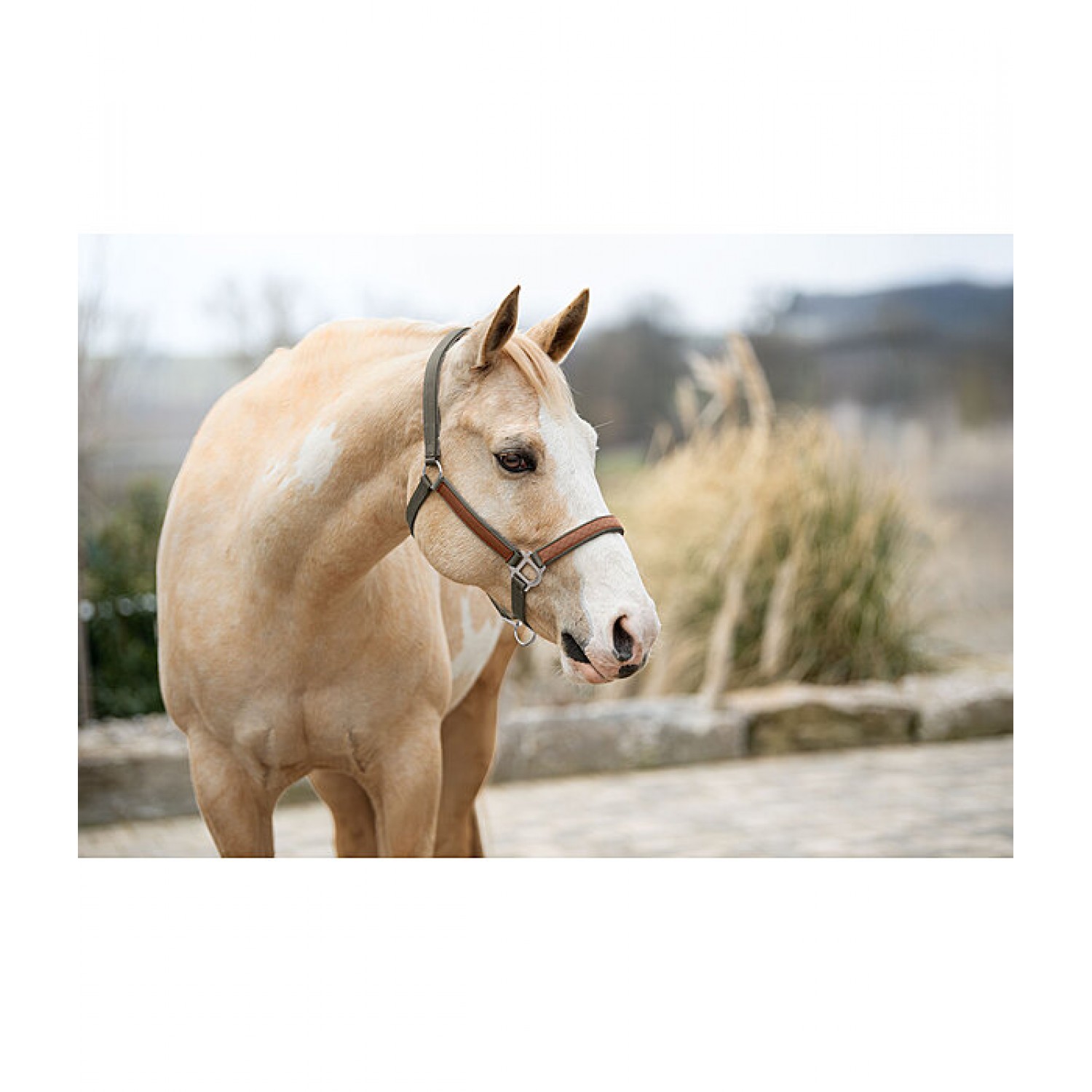 Шикарный недоуздок со вставками из кожи. Шейный, щечные и носовой ремни с мягкой обивкой из хлоропренового каучука. Регулируемые на шее и подбородке ремни. недоуздок 50% полипропилен, 50% полиэстер, обивка 100% хлоропреновый каучук.
