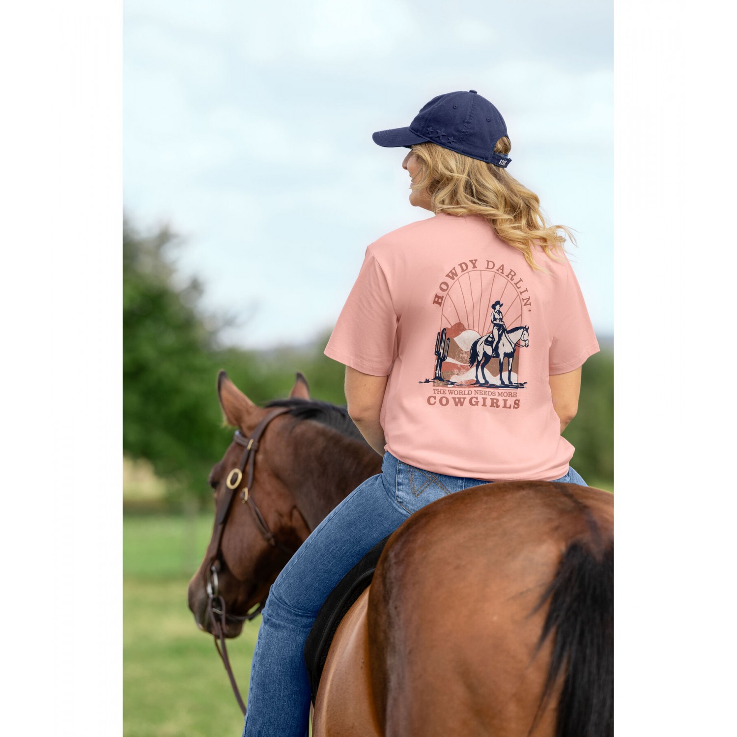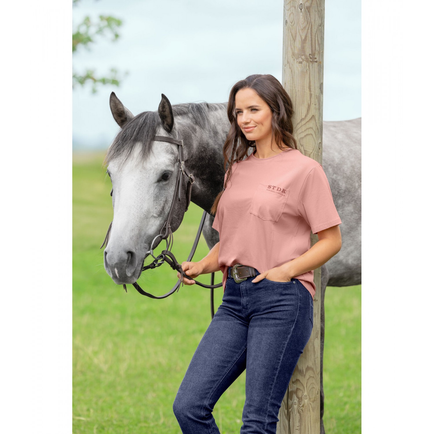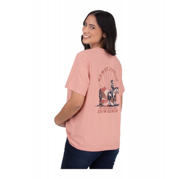 Удобная футболка свободного кроя с карманом на груди и крупным принтом в стиле вестерн на спине. Воздухопроницаемый. 95% хлопок, 5% эластан.
