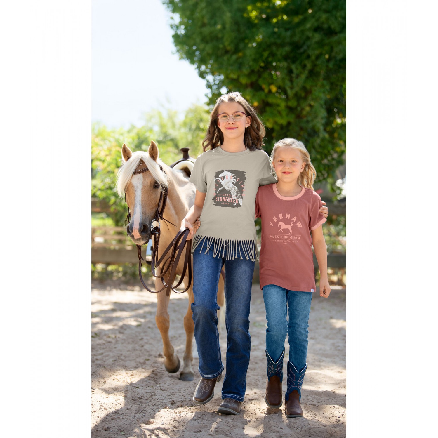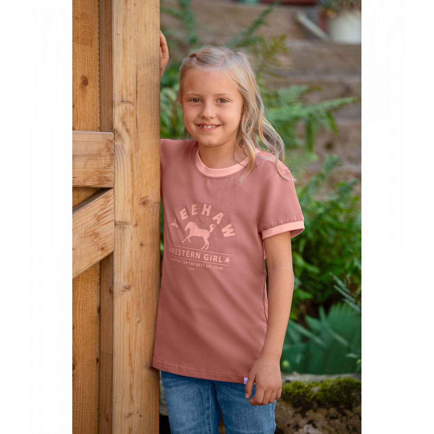 Великолепная детская футболка с мотивом в стиле вестерн и контрастной резинкой. Воздухопроницаемый материал. 95% хлопок, 5% эластан.
