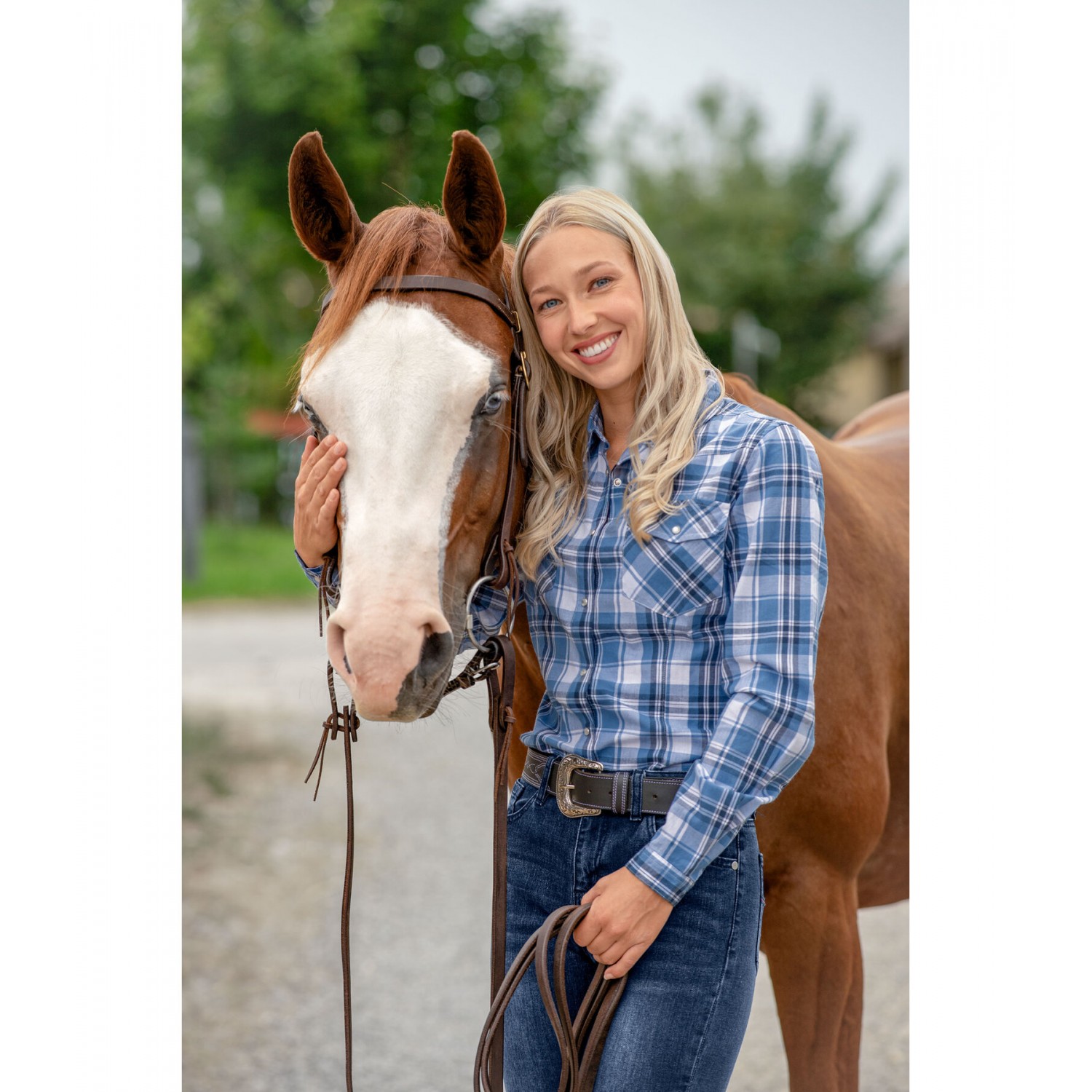 Дышащая клетчатая блуза-рубашка ярких цветов. Слегка зауженный крой. 2 нагрудных кармана. 100% хлопок.