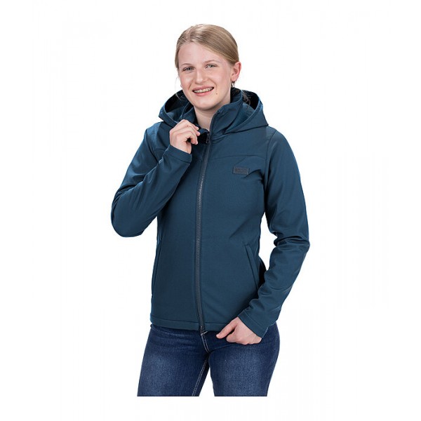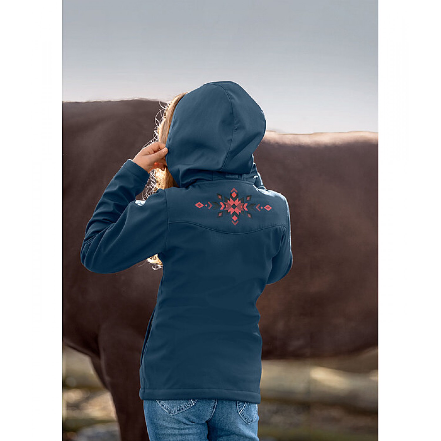 Ветрозащитная и водонепроницаемая детская куртка из софтшелла с откидывающимся капюшоном и принтом в стиле вестерн на спине. Передние карманы на молнии, двусторонняя молния с защитой подбородка и логотип на груди. Состав: 94% полиэстер, 6% эластан.