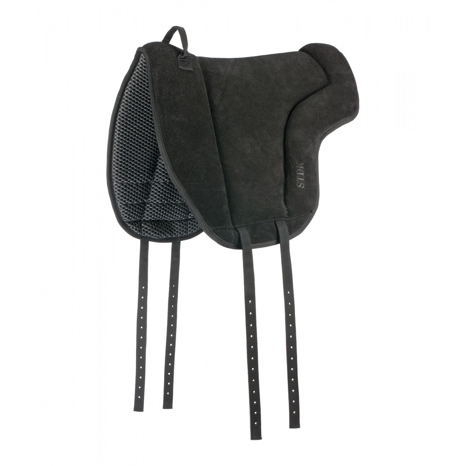 Седло для верховой езды анатомической формы с ручкой и замшевым сиденьем. Выступы на нижней стороне предотвращают скольжение во время езды. Толстая подкладка из пеноматериала обеспечивает удобную посадку Длина по спине 59 см, высота 51 см. Для использования с короткой подпругой.