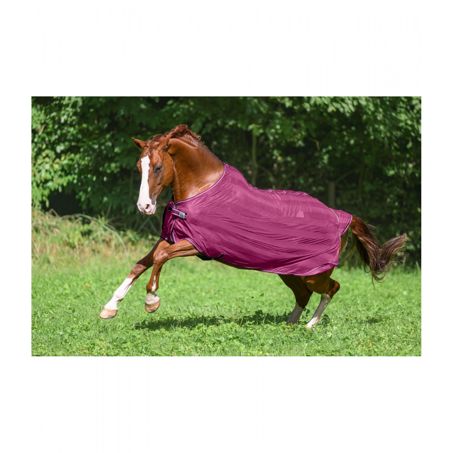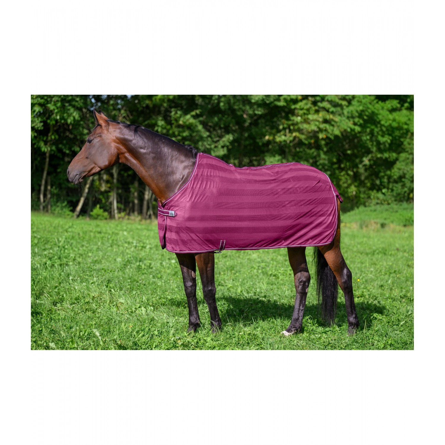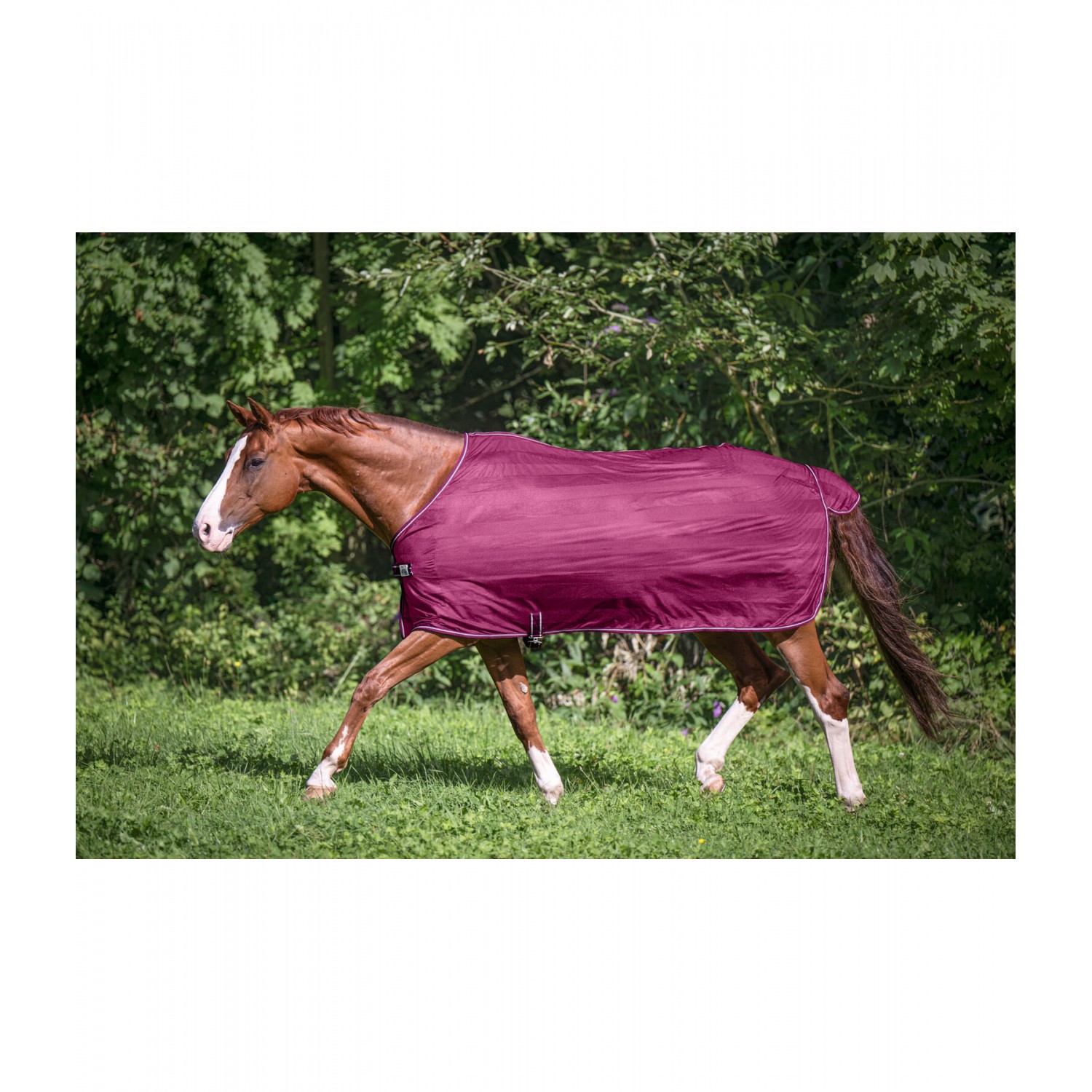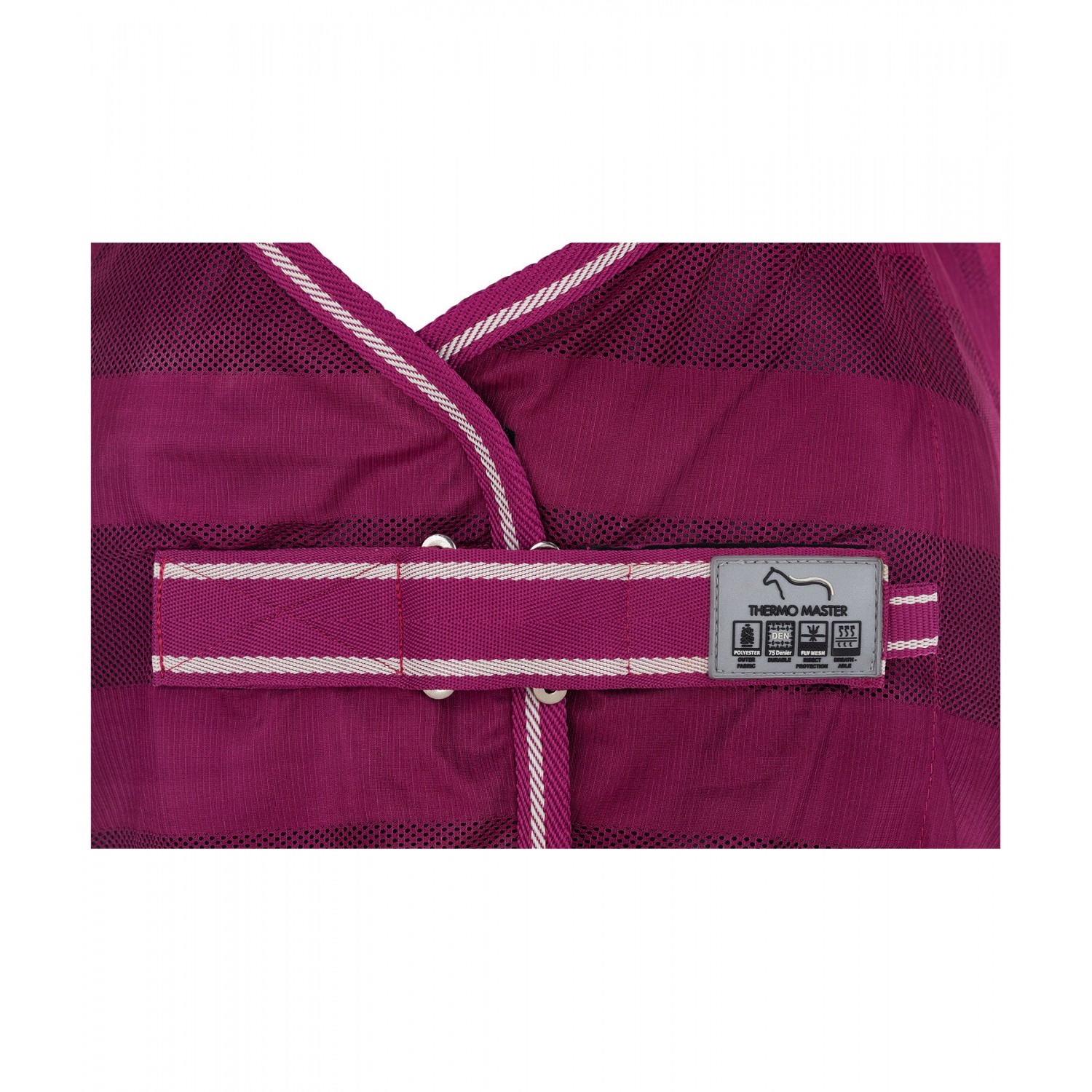 Сверхлегкая попона в лучшем соотношении цена-качество для повседневного использования. Она имеет простую застежку на груди и поясной ремень, который предотвращает соскальзывание. Идеальна в качестве надежной защиты от надоедливых насекомых. 100% полиэстер.