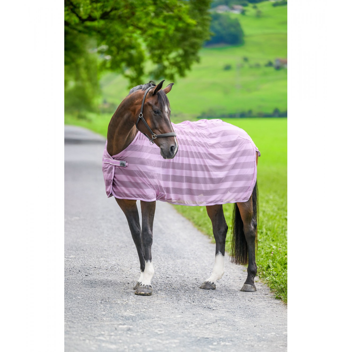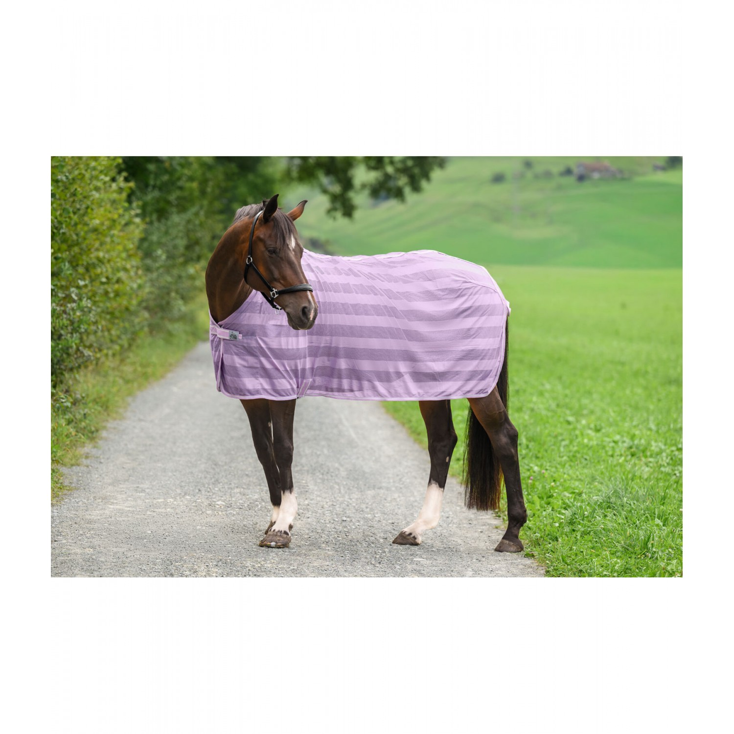 Сверхлегкая попона в лучшем соотношении цена-качество для повседневного использования. Она имеет простую застежку на груди и поясной ремень, который предотвращает соскальзывание. Идеальна в качестве надежной защиты от надоедливых насекомых. 100% полиэстер.