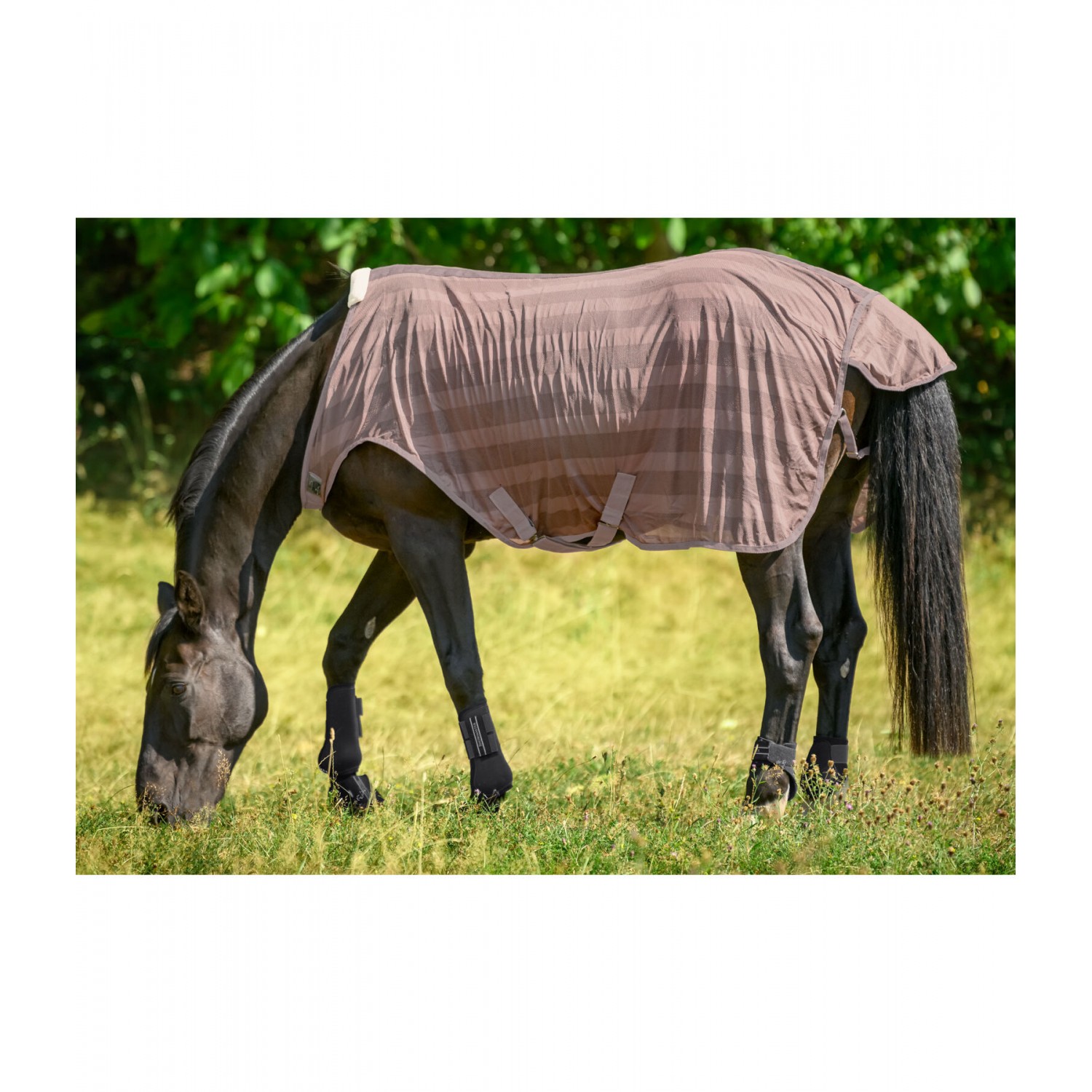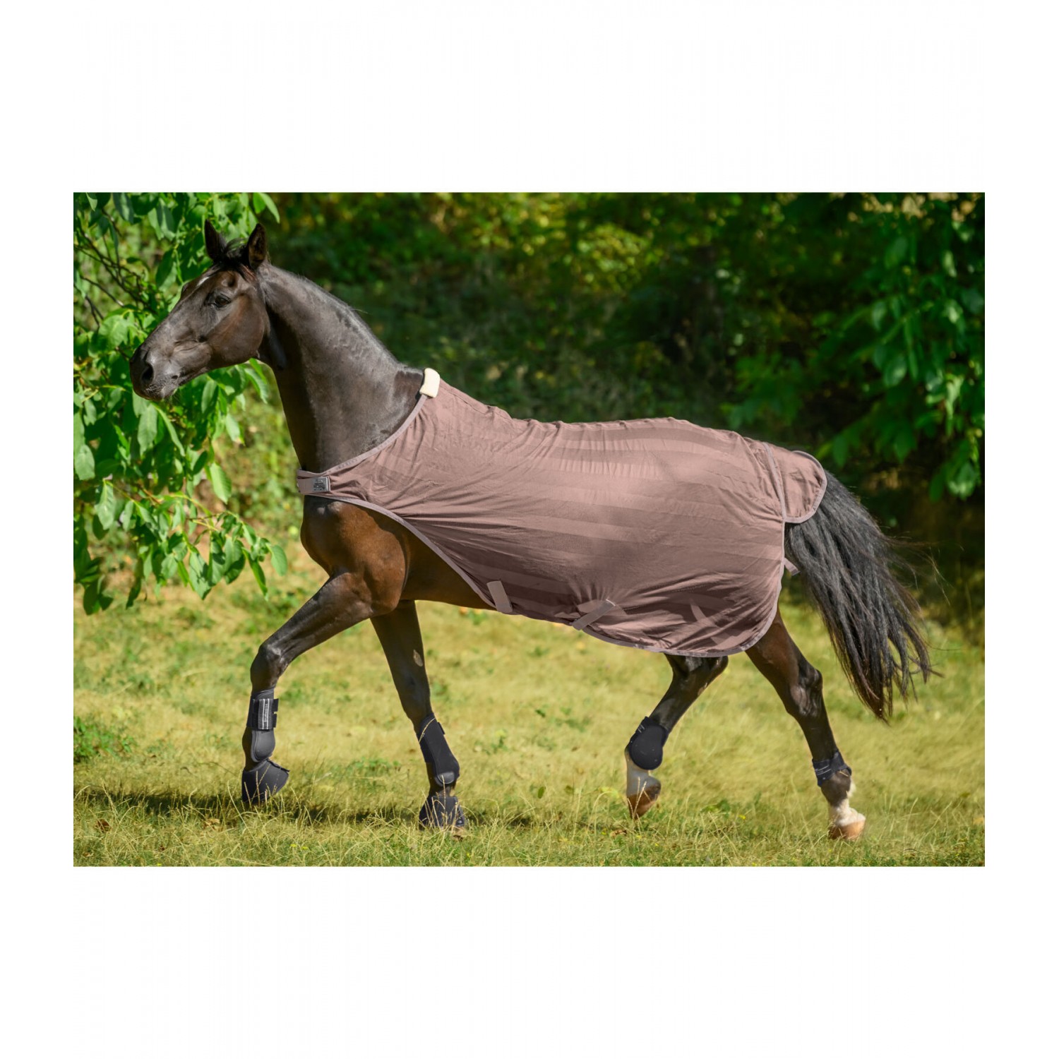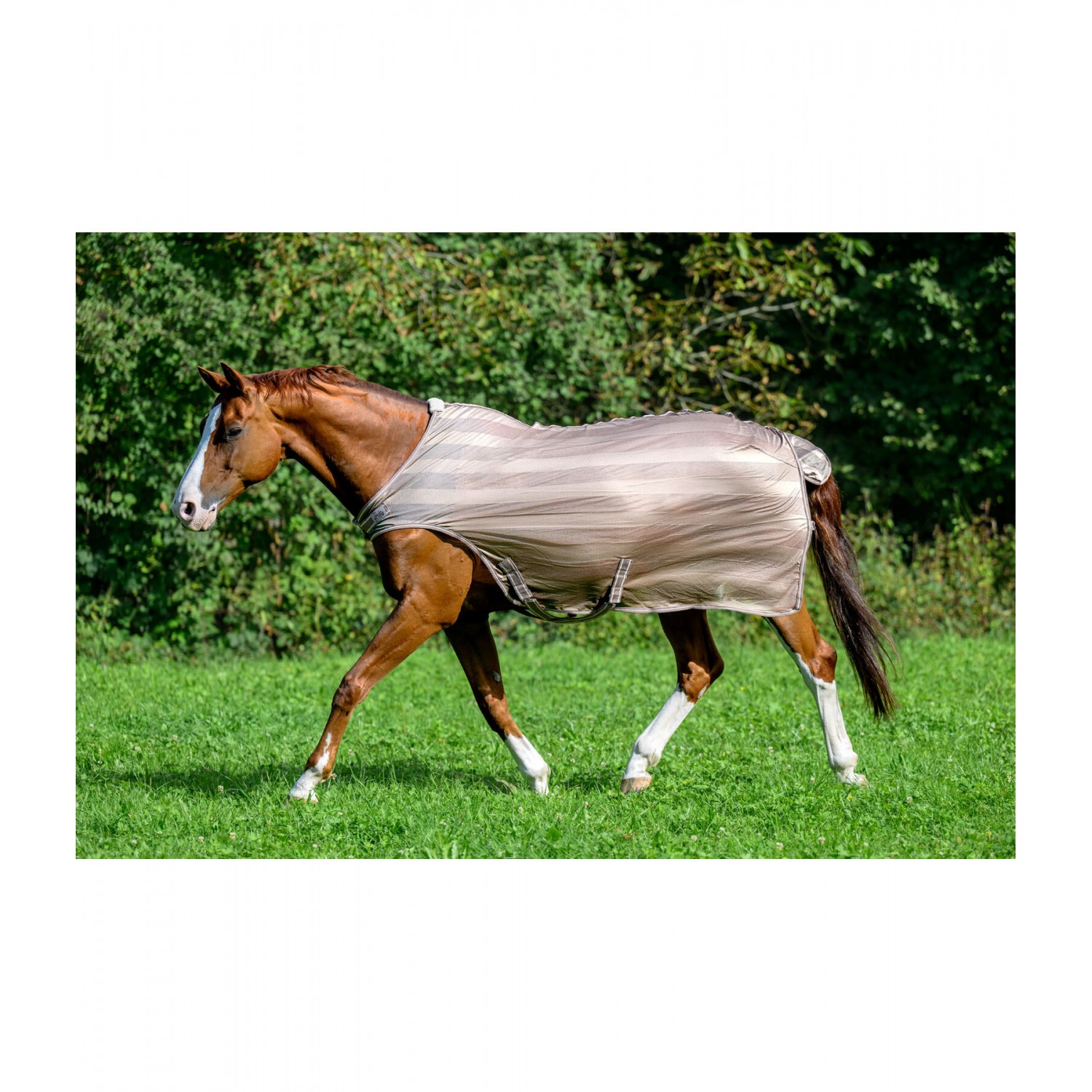 Чрезвычайно легкая и дышащая накидка для прогулок, с большим вырезом в области плеч, для защиты от назойливых насекомых или для охлаждения летом. Простая скрытая Т-образная застежка на груди с дополнительными ремешками с липучками и поперечными ремнями обеспечивает надежную фиксацию. 100% полиэстер.