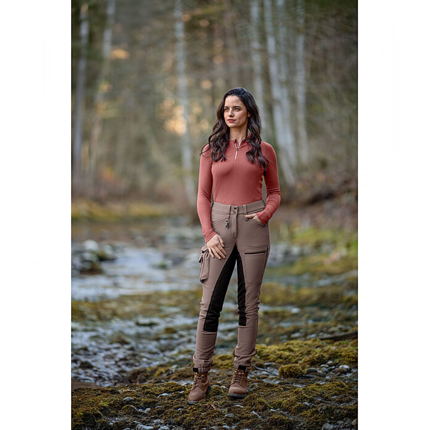 Прочные, ветрозащитные и водонепроницаемые походные бриджи со средней посадкой и полной леей из эластичной синтетической кожи для высокого уровня комфорта. Эластичный пояс со сборками на резинке обеспечивает надежную посадку. Манжеты на штанинах также оснащены резинкой и регулируемой застежкой-липучкой, благодаря чему брюки можно носить как в обуви, так и поверх нее. Множество практичных деталей облегчают походы: на правом бедре имеется изысканный большой двойной карман на застежке-липучке и боковой карман на молнии. На левой штанине имеется более плоский карман, в котором также достаточно места для хранения мелких предметов благодаря двум прорезям на молнии. Маленький карабин на петле для ремня для крепления ключей и т.п. 74% полиамид, 26% эластан; Отделка 92% полиэстер, 8% эластан.