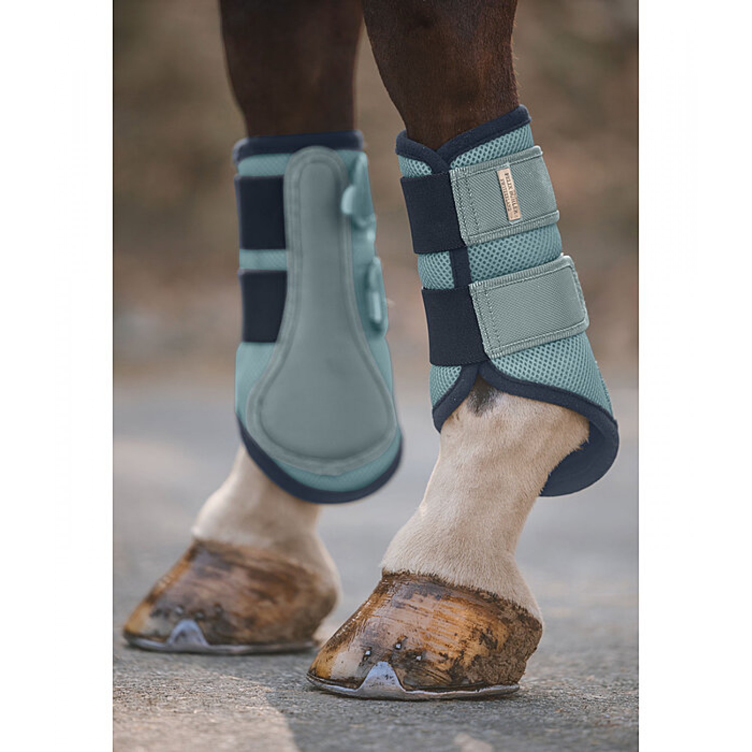 Чрезвычайно дышащие, мягкие ногавки для передних ног из сетчатой ткани, обеспечивающие постоянную циркуляцию воздуха. С эластичными пипучками для оптимальной регулировки размера и блестящей металлической пластиной с логотипом. Усиление внутри для дополнительной защиты от скольжения. Окантовка из флиса по всему периметру защищает от натирания. 100% полиэстер. Продаются парами.