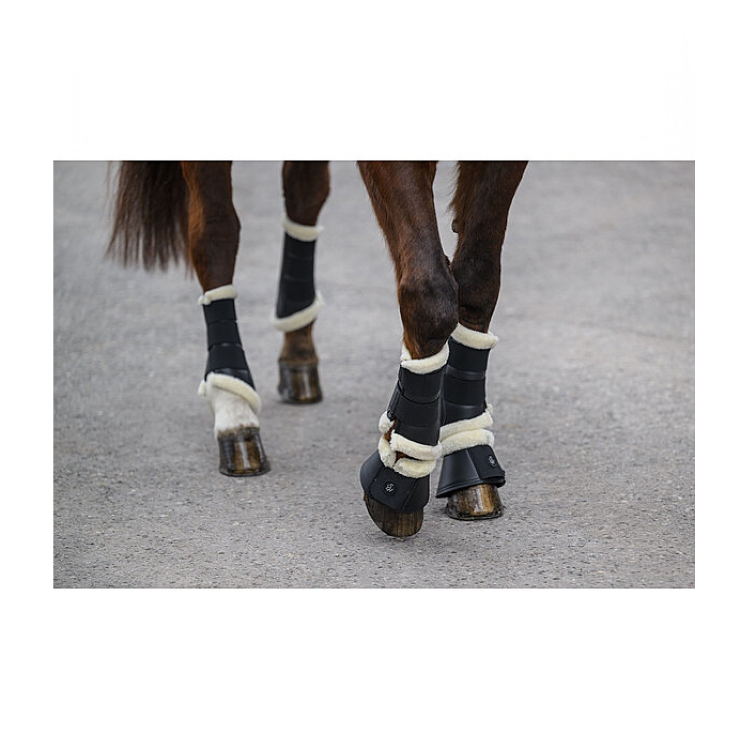Выездковые ногавки из прочной синтетической кожи с мягкой отделкой из плюшевого флиса сверху и снизу. Сетчатая подкладка для оптимальной воздухопроницаемости. Эластичные ремешки на липучках для регулировки размера и надежной посадки.